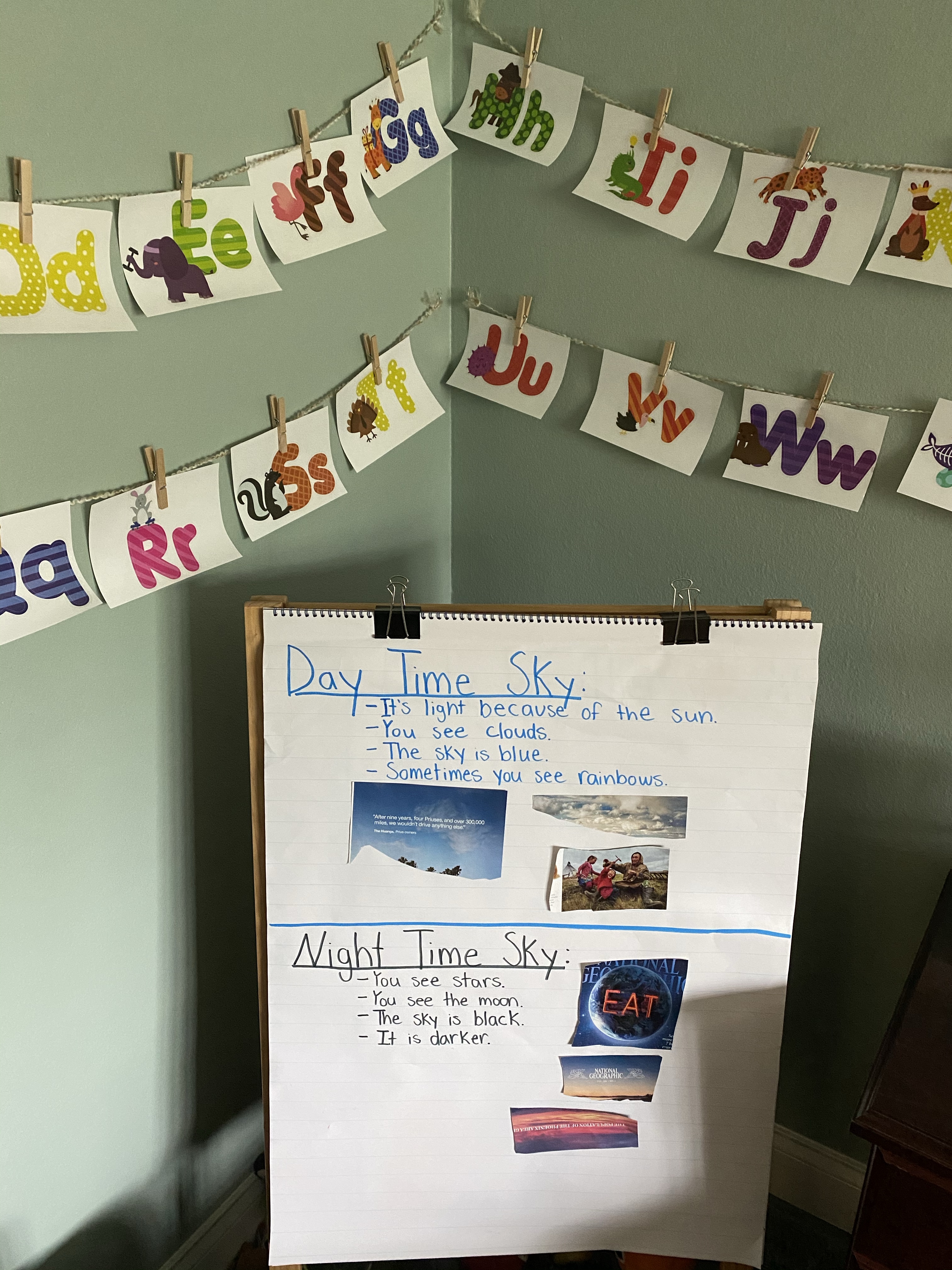 -an easel and chart paper (substitute a regular notebook or sheet of paper)
