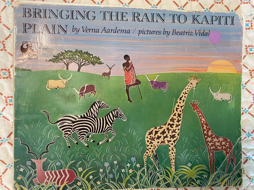 This Nandi tale was one of my favorites as a kid too! It describes how Ki-Pat brings rain to the dry Kapiti plain with playful rhyming and beautiful illustrations.