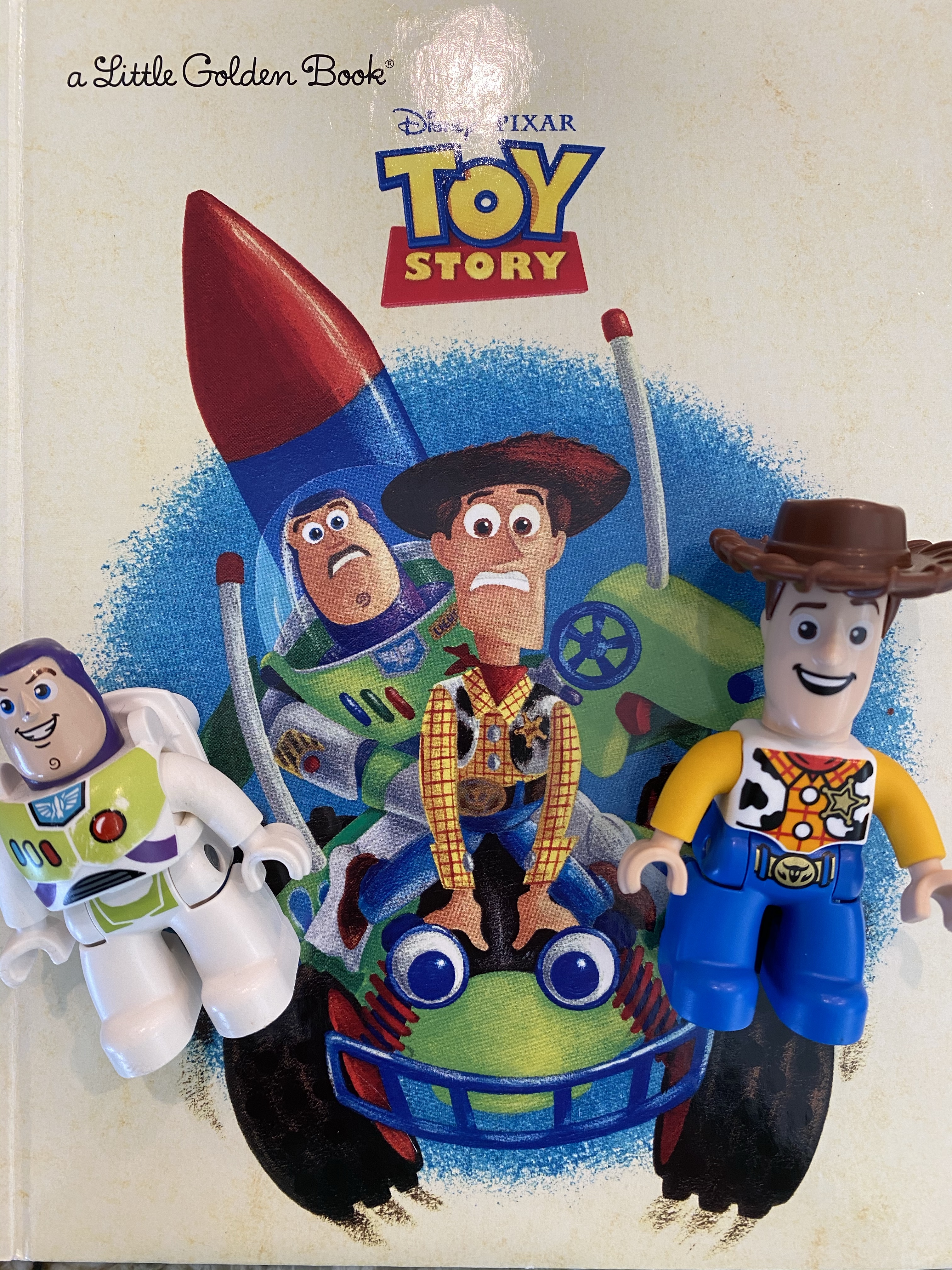 -Toy Story playtime retelling: We read a book based on Toy Story, then I had my little think of who the main characters were and find toys to match the characters. Then he played Woody and Buzz and I played Andy and Sid and we acted out the story together. This works on retelling skills in a fun way that just feels like play! It can be done with any story you have the matching toys for!