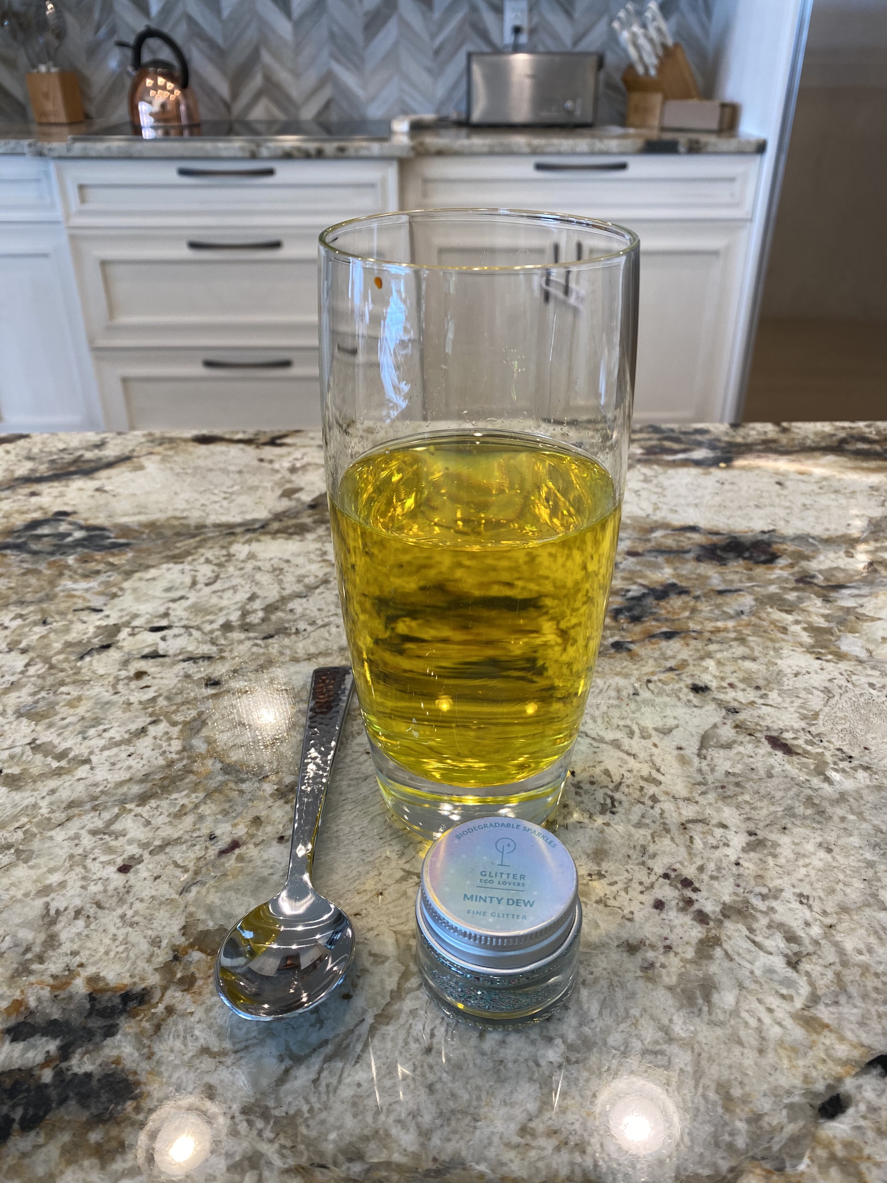 -Magic disappearing color: Ok, this was seriously SO cool! I got the idea from Mess for Less then just modified it so it was Disney themed! This involves bleach so be VERY careful to closely supervise your kiddo! You can do it two ways- you can fill a clear cup about half way with water and add one drop of yellow food coloring. In a different cup, put about 1/4 cup of bleach. Have your little sprinkle some “pixie dust” (glitter) into the bleach. Pour then stir the bleach into the colored water while saying “Bibbity Bobbity Boo!” and the yellow will “magically” disappear! If you want to make the bleach less stinky and have your kiddo stir- you can add about a cup of water and 1/4 cup of bleach to a clear glass. Have them sprinkle in the pixie dust then add one drop of yellow food coloring. Have your little stir and watch as the water changes from yellow to clear (you can do it this way over and over about 5 times! It’s crazy!)