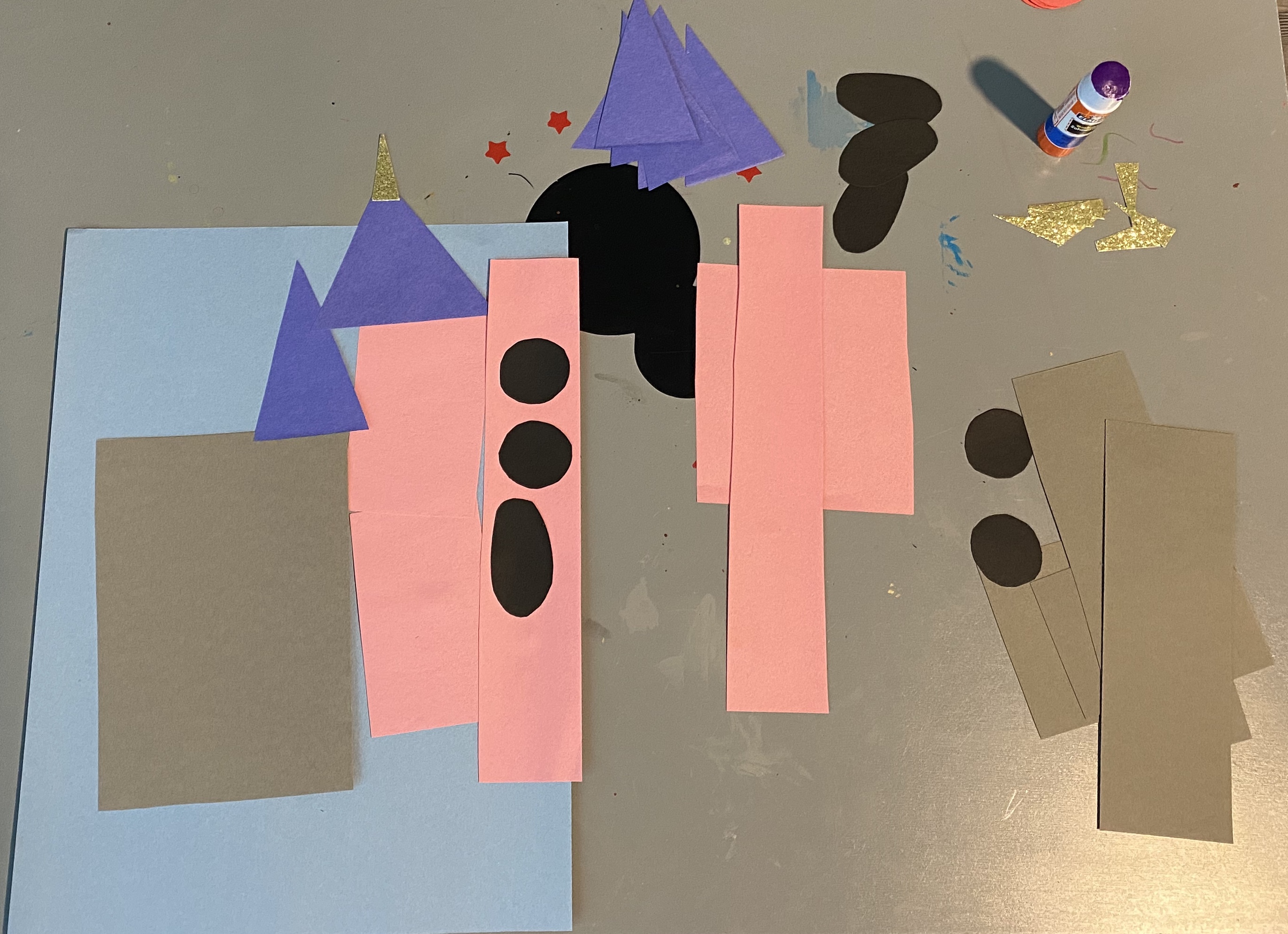 -Shape castle: I cut out rectangles, squares, triangles and circles in the colors of Cinderella’s castle. We reviewed each shape then I let my little build his own castle using the shapes! We continued to discuss the shape names as we went!