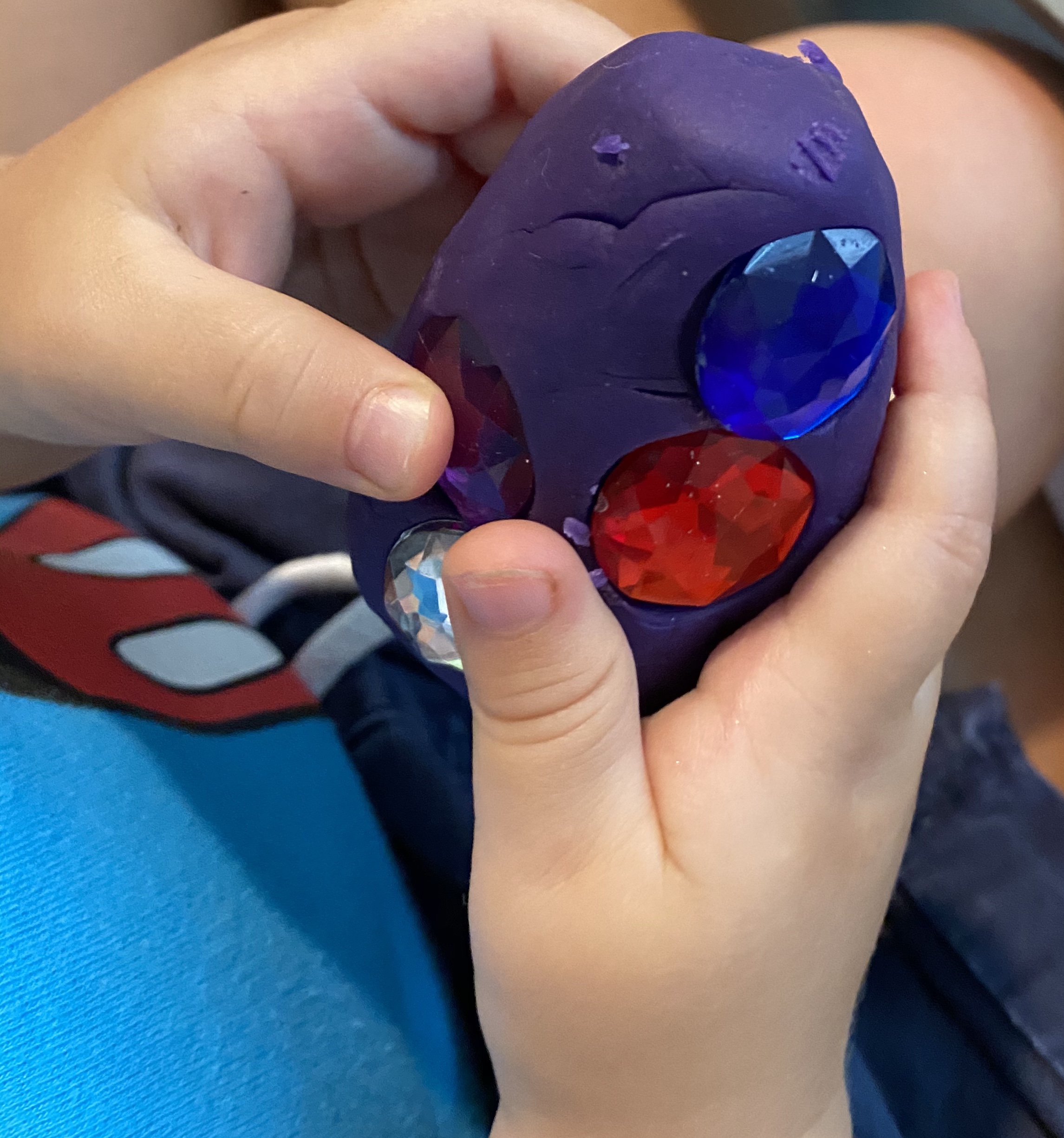–Dragon eggs: Make and egg shape out of playdough then have your little decorate it with plastic gems or sequins! I got this idea from My Baba and both boys loved it!