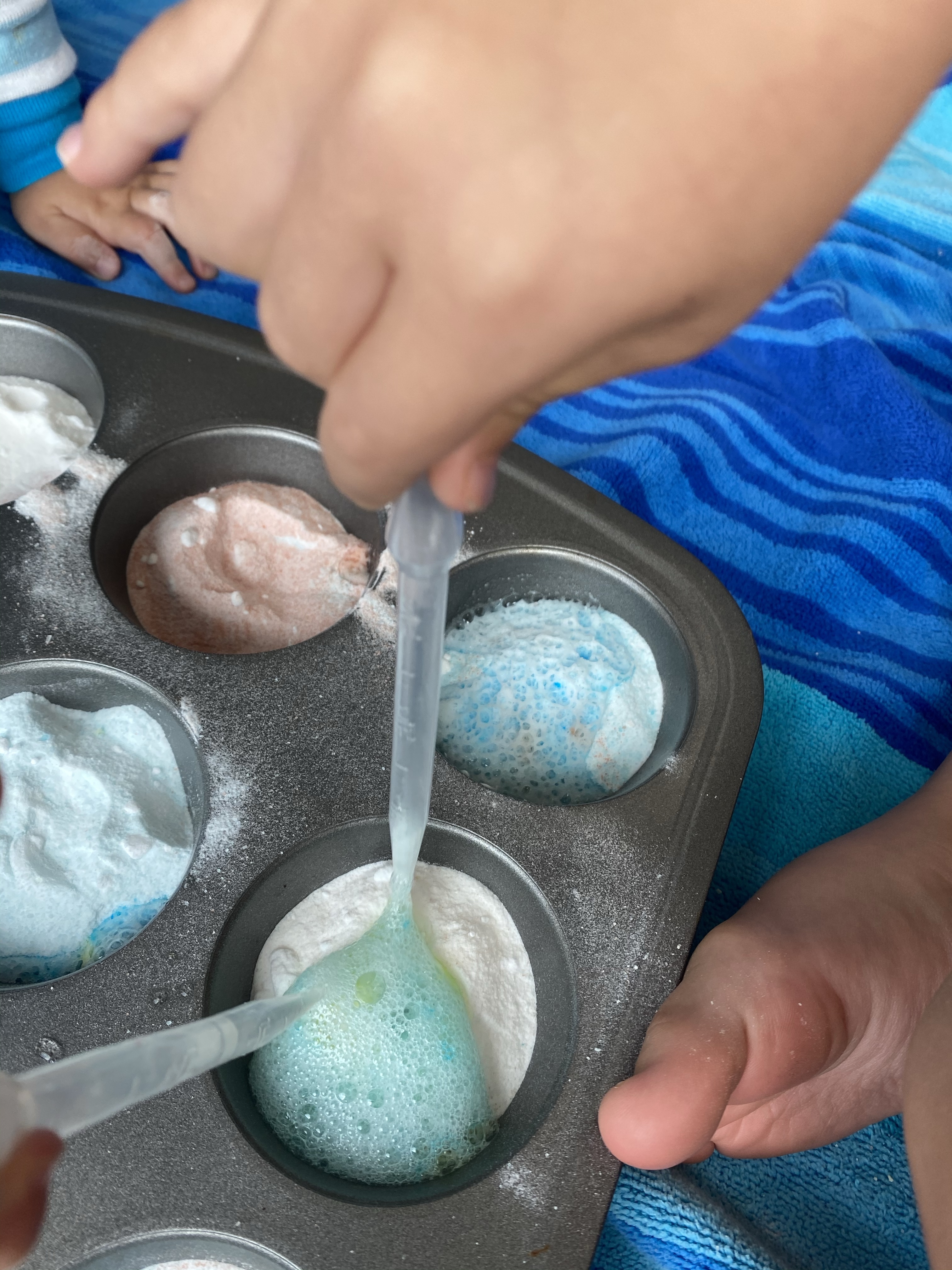 –Revelio: The revelio charm causes hidden things to become known- and it works like a charm for this fun color change fizzy activity! Mix half a small pack of yellow jello with a cup of baking soda in a bowl. In another bowl do the same with red, and in another with blue. Scoop some of the mixtures into the spaces in a muffin tin (ie. yellow in some spots, blue in some, etc). Then put a different color on top (red and blue will make purple, yellow and blue will make green, yellow and red will make orange). Have your little use a pipette to squirt vinegar into each space, revealing the first color…and then as they add more vinegar, revealing the second color when the two mix! This is really fun to play around with and the jello cuts the vinegar smell nicely!