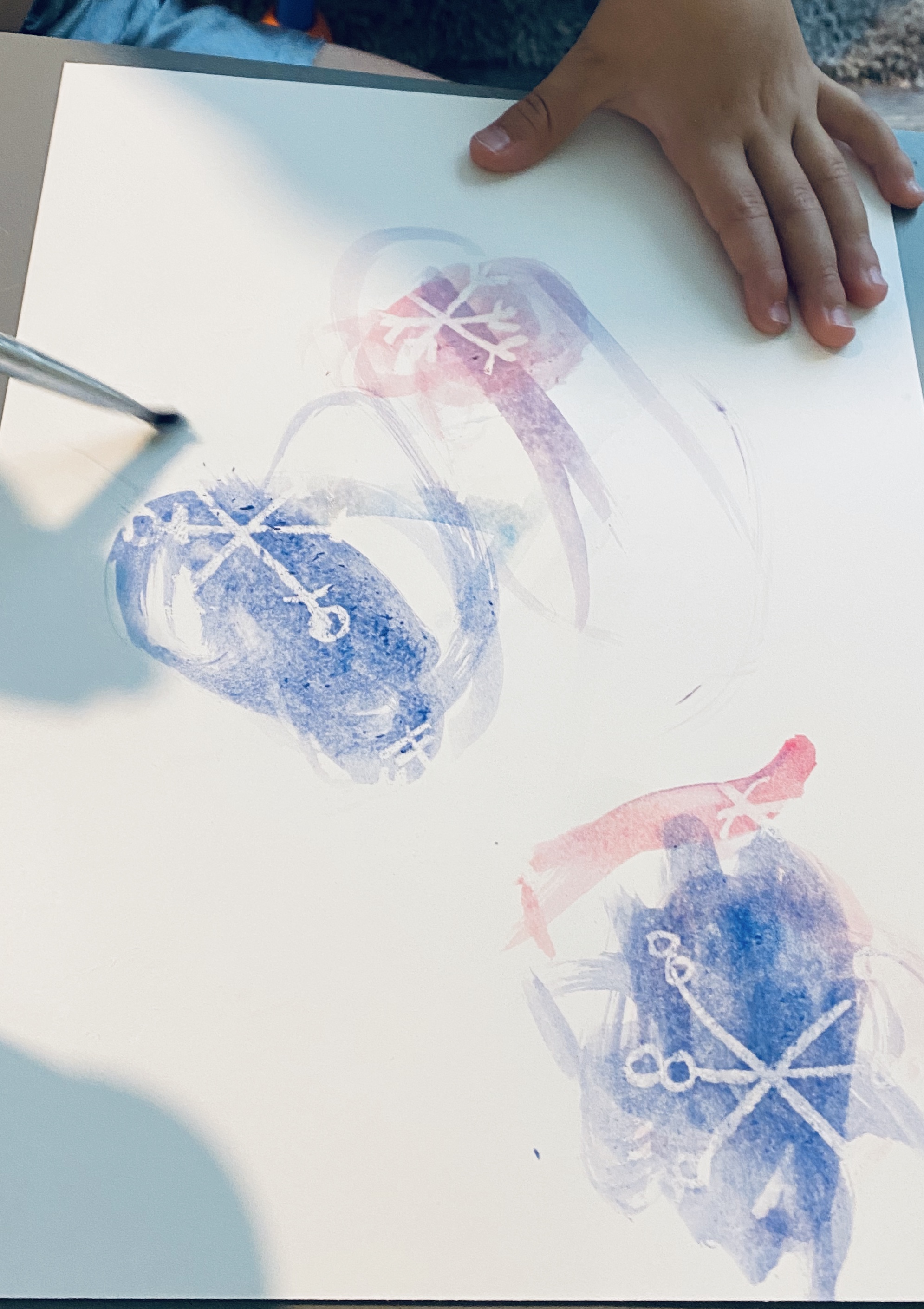 -Magic snowflake reveal: Draw several snow flakes on a piece of white cardstock using a white crayon. Give your little some snowy colored water color paint and have them paint the page, magically revealing the snowflakes as they go!