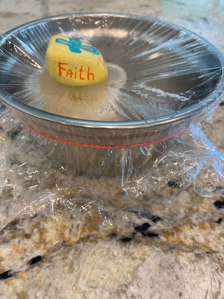 -Desalination experiment: Sharks and other salt water fish live in an environment that’s toxic to other animals because it’s salty. They have a special system (including their kidneys and a chemical called urea) that can remove salt from the water they drink. We decided to do an experiment that would also take the salt out of water. We poured about a cup of boiling water in a bowl and stirred in a good amount of salt. I let it cool, then let my little taste a tiny bit to confirm it was salty. We placed a smaller cup inside the bowl, then we loosely covered the bowl with plastic wrap held in place by a rubber band. We placed a stone on the wrap to make it slant toward the small cup. Then we waited…as the water evaporated it was collected on the wrap and dripped into the smaller cup. The salt was left behind because it’s a solid and therefore can’t evaporate. I let my little taste the water in the small cup after the week was over and it was fresh and not salty! (Tip- this worked much quicker outside in the sun since heat is what powers evaporation!) I got this idea from STEAMsational!