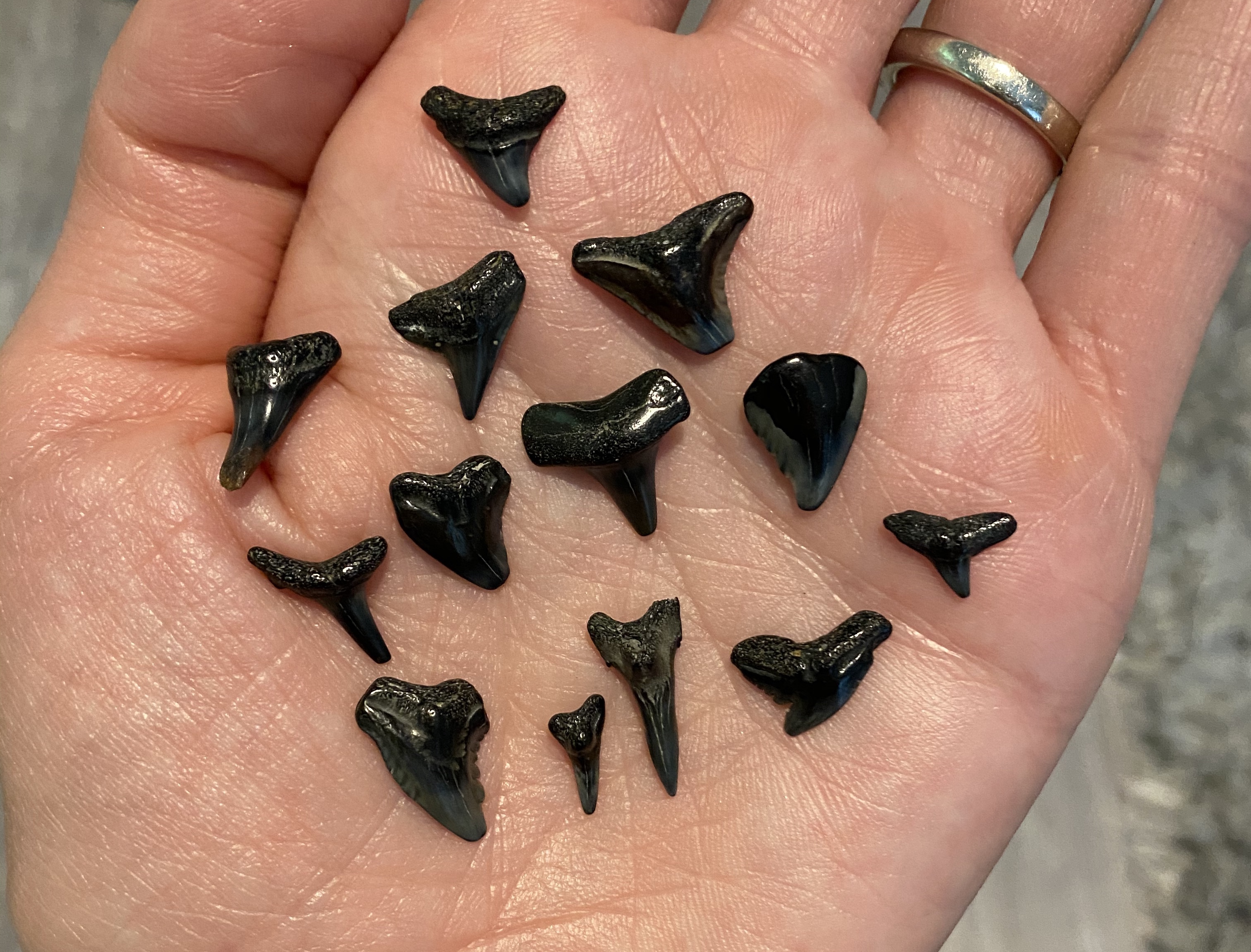 So Discovery Channel’s “Shark Week” starts this Sunday and my little is sort of obsessed with the creatures, so I thought it would be perfect timing to do some shark themed learning! It all started when he saw “Shark Boy and Lava Girl” a few weeks ago, and since then has morphed into a fascination with Bethany Hamilton (the amazing Christian pro-surfer who’s also a shark attack survivor) as well as all things shark related. Just as a disclaimer- I have a collection of prehistoric shark teeth I found at the beach years ago, but if you don’t have any on hand you can cut out pretend ones from white or black craft foam, or make them from playdough for the shark teeth activities below! Also, we did all the tooth related activities on the same day and kind of made it a “shark tooth day”. You don’t have to do this, but it made it fun to group them together! Don’t forget to swim on over to the toddler post “Baby Shark Dodo Dodo Dodo” for more fun shark activities great for young kids of all ages, like making a clothespin shark, a taste safe ocean sensory play activity and more!