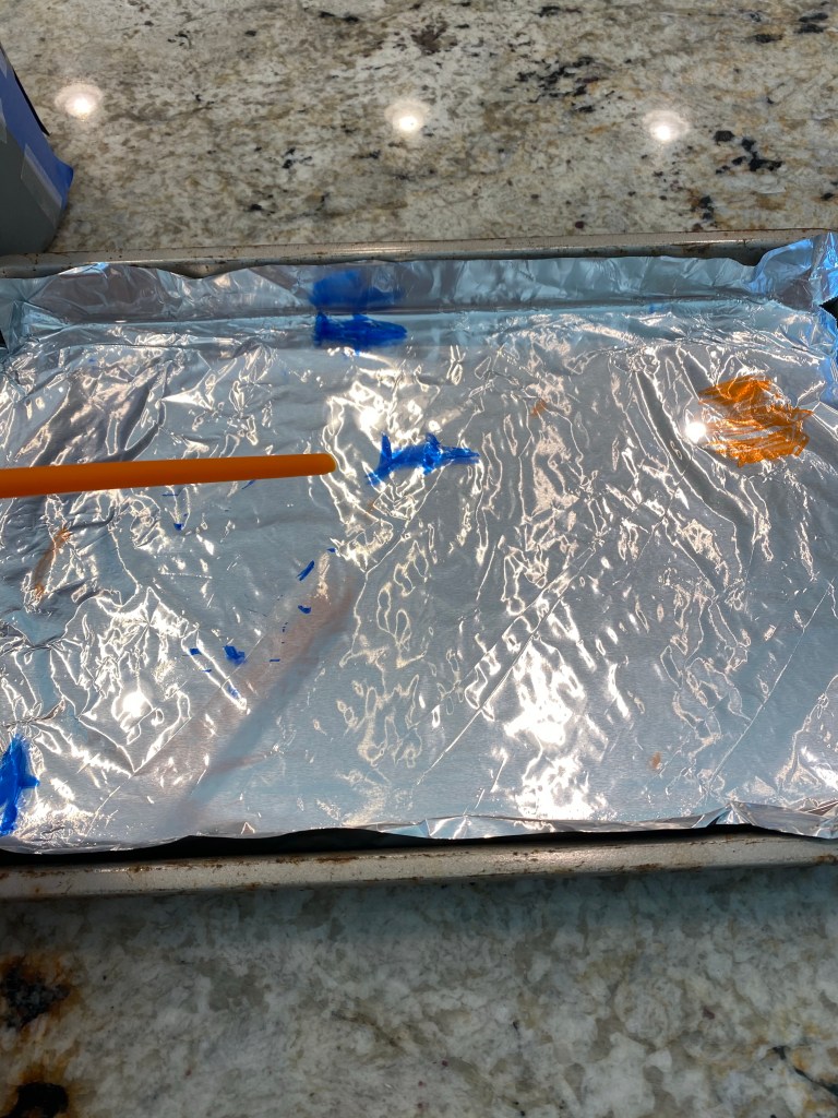 -Swimming shark activity: This was so crazy you guys! You draw a few small sharks on a piece of tin foil with an expo marker. Place the foil on a cookie sheet then fill the bottom with water. The shark magically “swims” off the tin foil and then you can blow it around with a straw! (remind your little not to drink the water with the straw…hindsight 20/20) I got this from The Keele Deal!