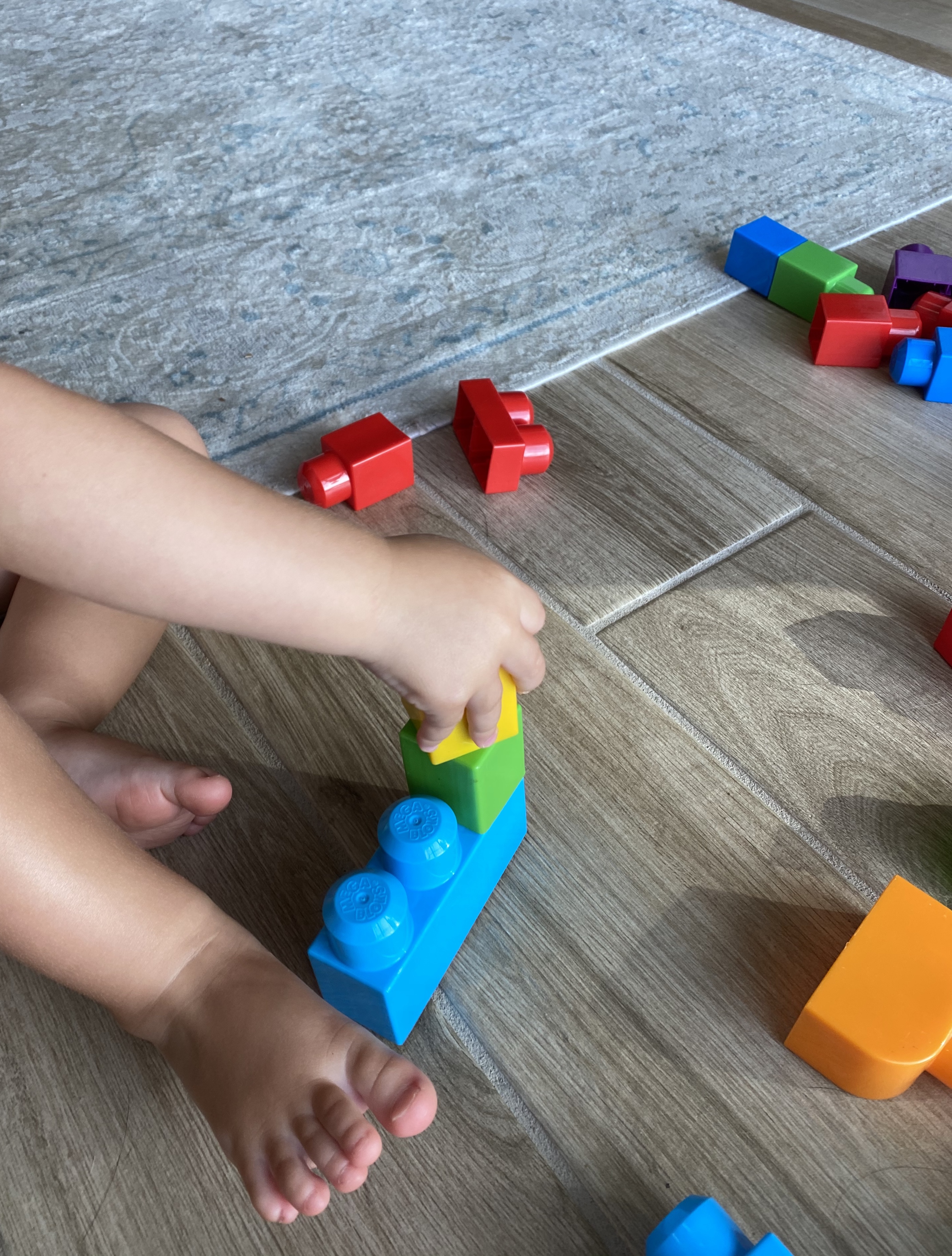 –Block building: Whether it’s chunky legos or traditional blocks, building is great fine motor practice for toddlers, and also builds engineering/problem solving skills and creativity.