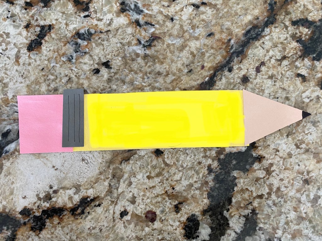–Shape pencil: I cut out shapes for my littles to glue together to make a pencil. We reviewed each shape and its attributes as we used them, then my littles wrote their names on them (I helped my toddler by holding his hand with the pen in it of course! He thought it was cool to “write” like his big brother!) This was the first time my youngest used the glue stick too! He was totally into it! LoL I got the idea from A Dab of Glue Will Do!