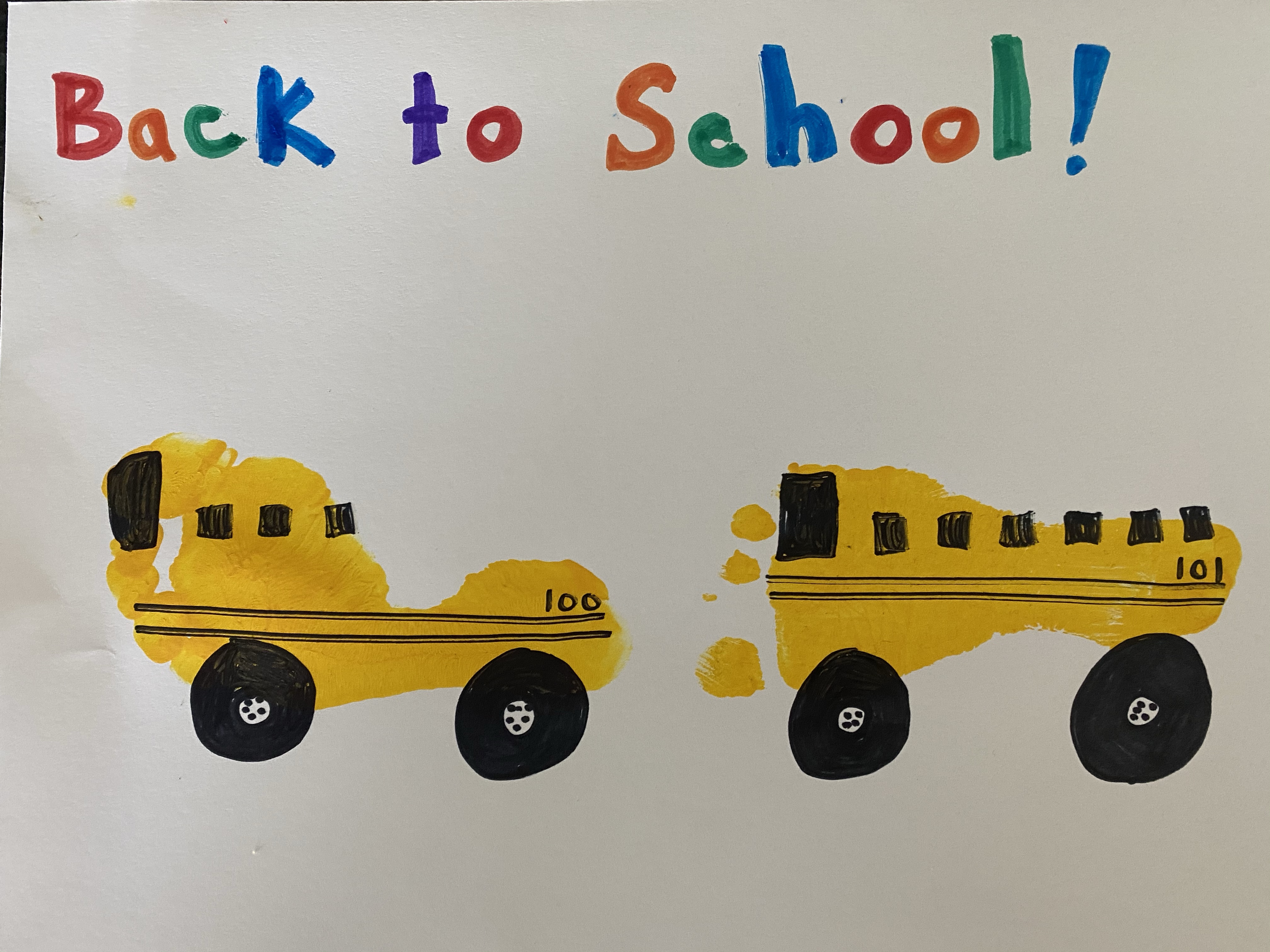 –Footprint school bus: I used my little’s feet to make some school busses for this cute “Back to School” themed picture! I got the idea from I Heart Arts and Crafts!