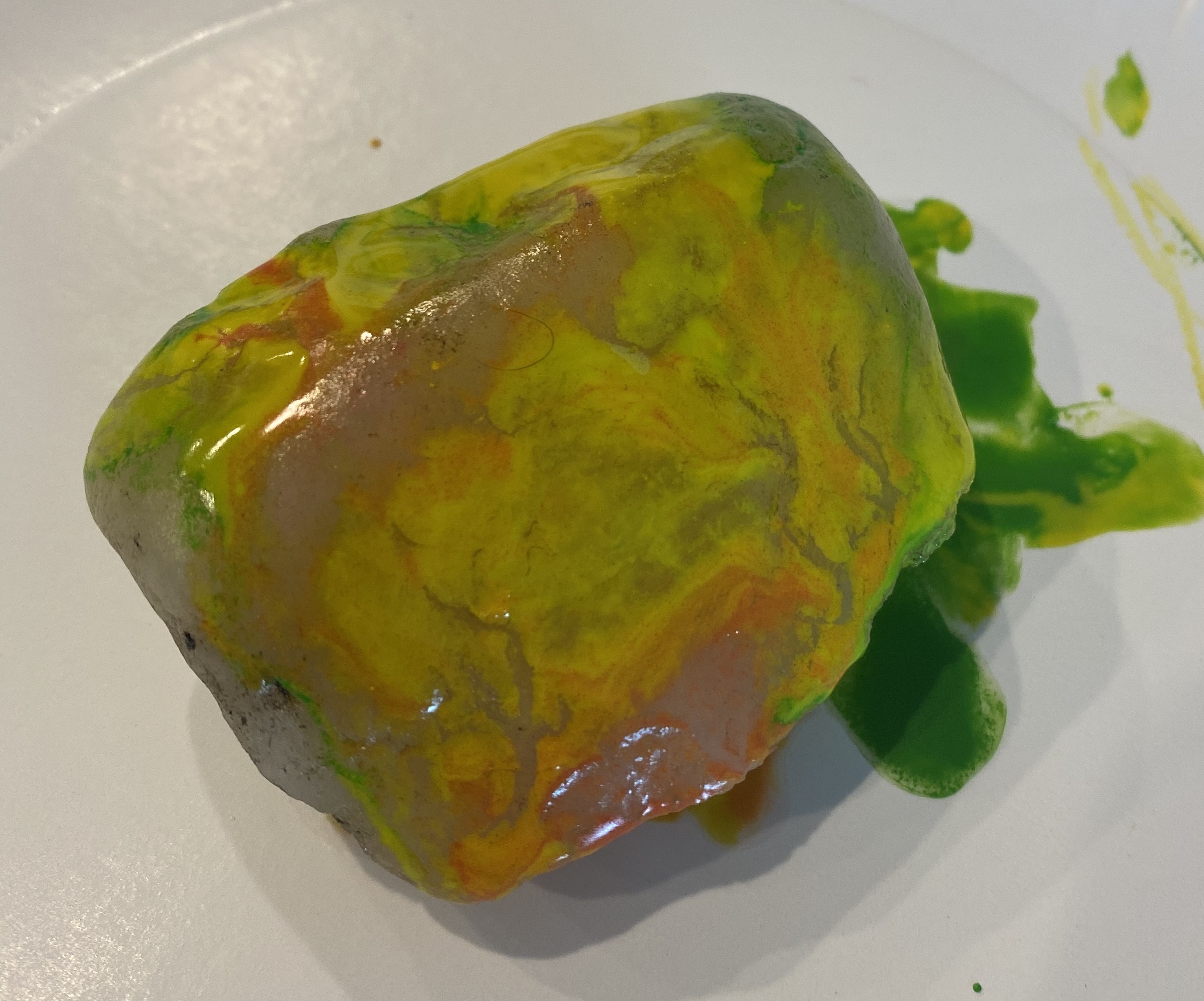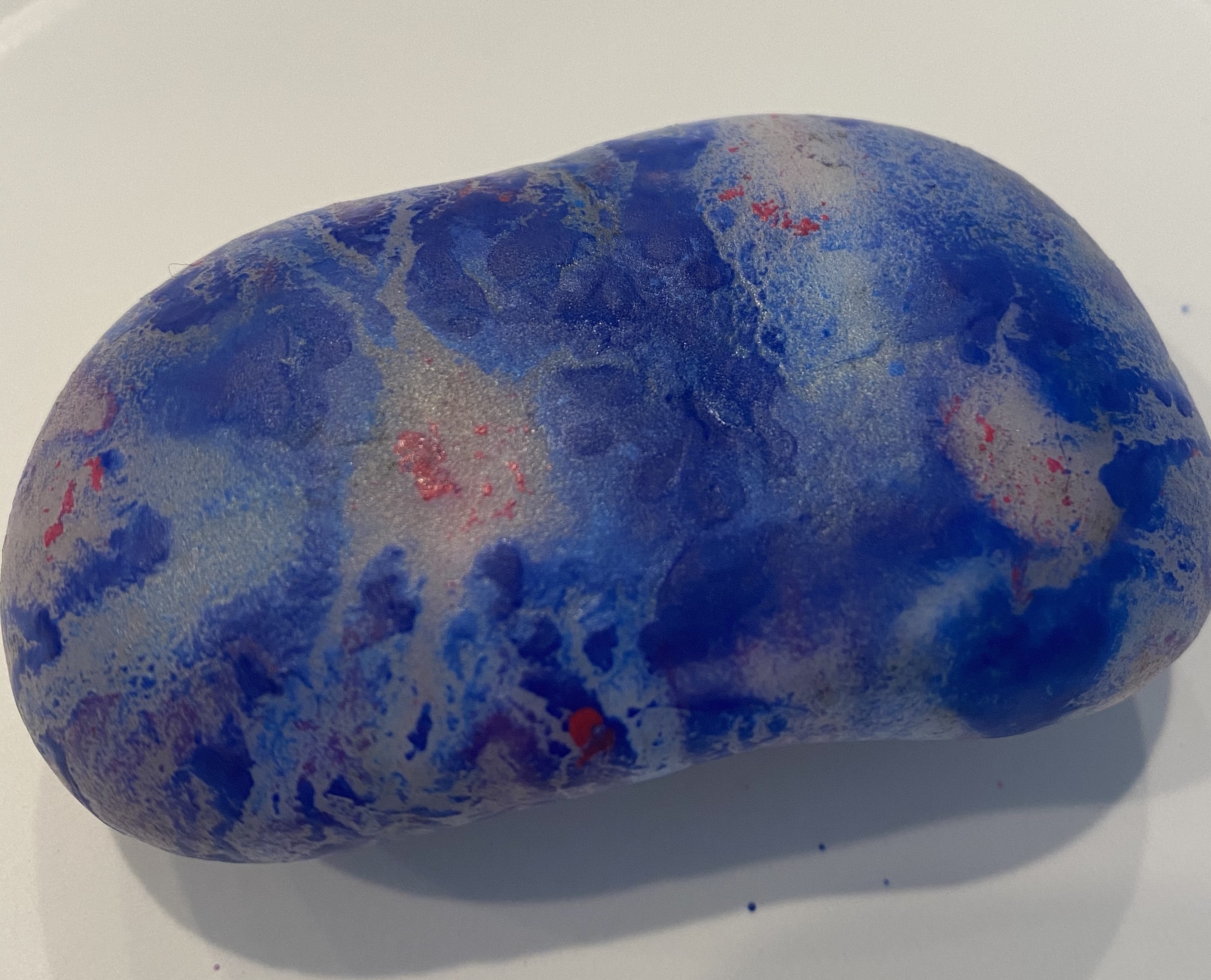 -Hot rock coloring: This activity was SO fun, I had to get in on it too (my rock is the blue one below)! hahaha You find a few smooth rocks, wash them off and pop them in the oven at 350 for 10 minutes. While you wait, peel several old crayons so the wrappers are completely off. Take the rocks out, place them on paper plates and let your little press the crayons on the hot rocks so the color melts all over them. Review what melting is and why the crayon is melting on the rock. Make sure to tell them not to touch the rocks with their hands- only the crayon (or have them wear mittens or gloves like I did!) because they are HOT. When they dry/cool off they’re so smooth and pretty looking! I got this idea from The Relaxed Homeschool. TIP: We found that Crayola crayons worked better than Crazy Art- there was more colorful pigment in them, rather than clear wax, that transferred to the rock.