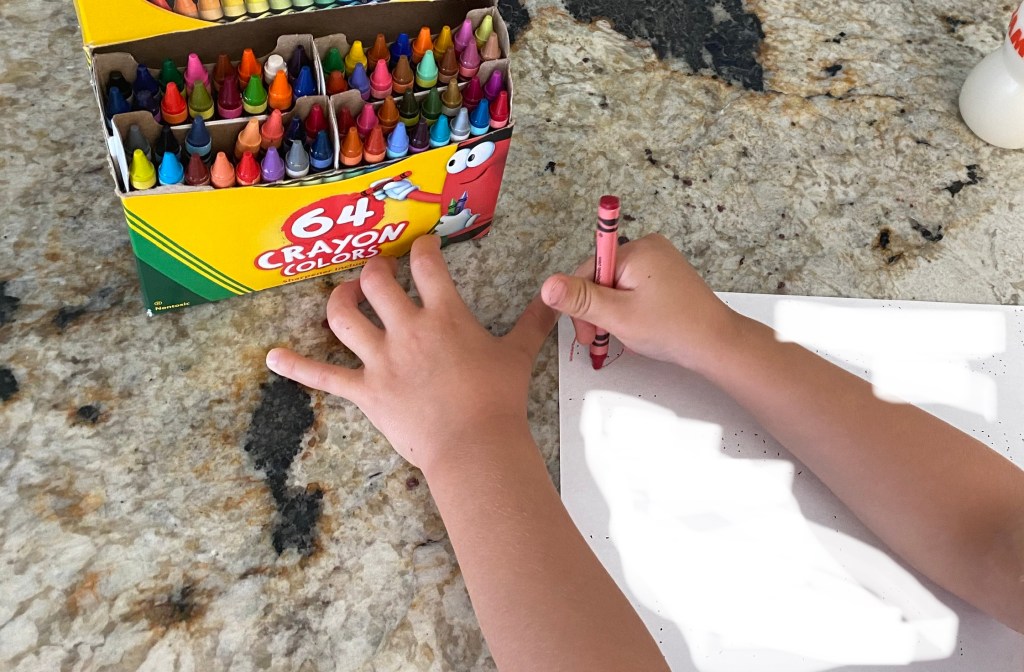 There’s just something about a nice, fresh box of sharp crayons waiting to be opened and used to create- so this week I decided to make those cute little coloring sticks the theme for our learning! Because they easily melt, there are SO many fun activities you can do with crayons other than just coloring (even though we’ll be doing that too!). Don’t forget to pop over to the toddler post “A World of Color” for more fun crayon themed art activities like coloring on sandpaper and making crayon box hand print art!