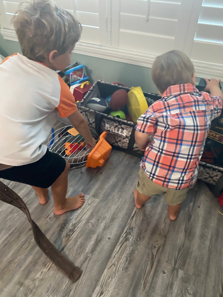 –Color bath: Each day I added several drops of food coloring that matched the day’s color to the boys’ bath along with several bath toys that also matched the color! As they played I pointed out the color of the water and the toys.