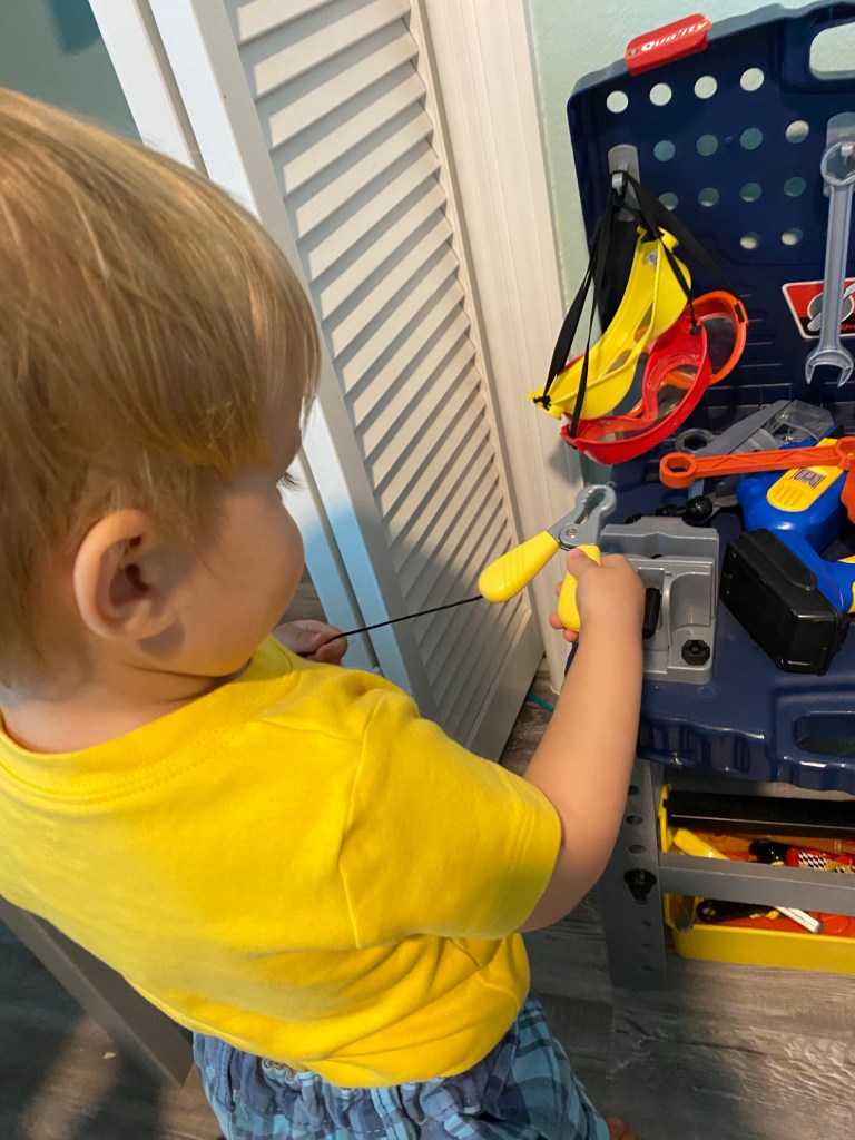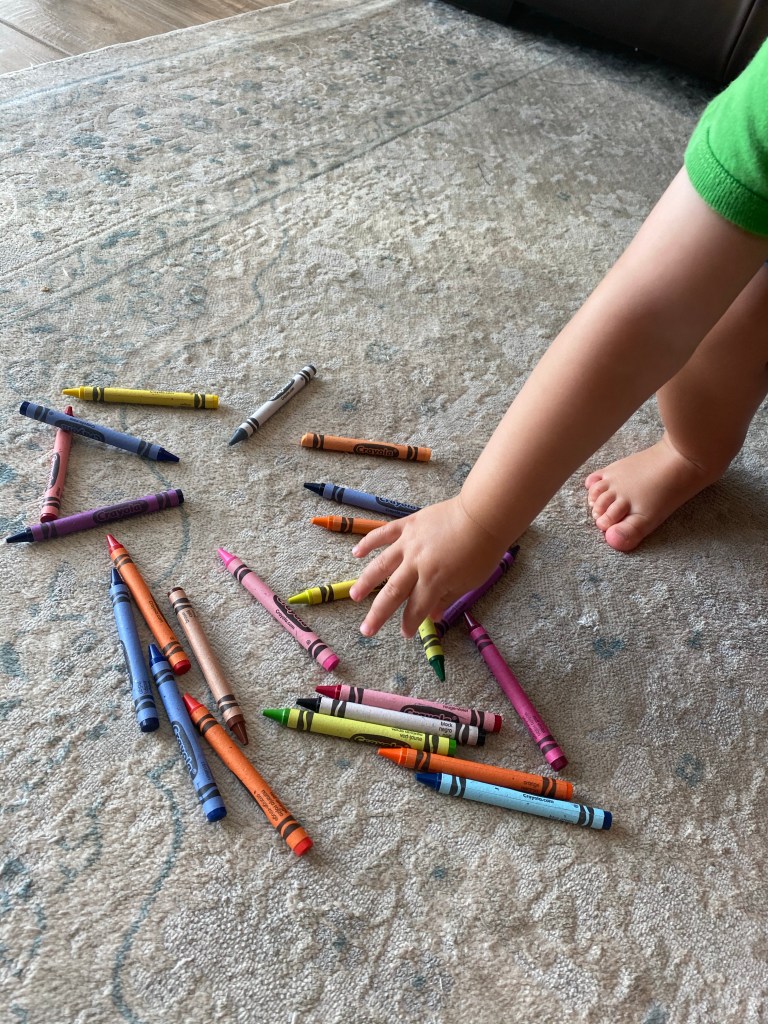 –Crayon color sort: Each day we dumped out a box of 24 crayons and I had my little find all the crayons that matched the color of the day. I started by finding the first one for him then asking him to find the other crayons that were red etc.