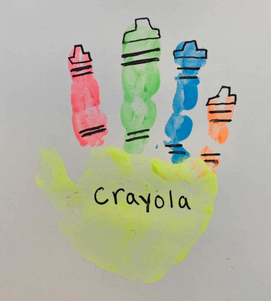–Crayon box hand print: My little loves doing hand and footprint art, so we made a crayon box hand print! He did such a good job keeping his hand open so he didn’t smudge the paint! Please excuse the crazy neon colors- I accidentally ordered them instead of regular ones!