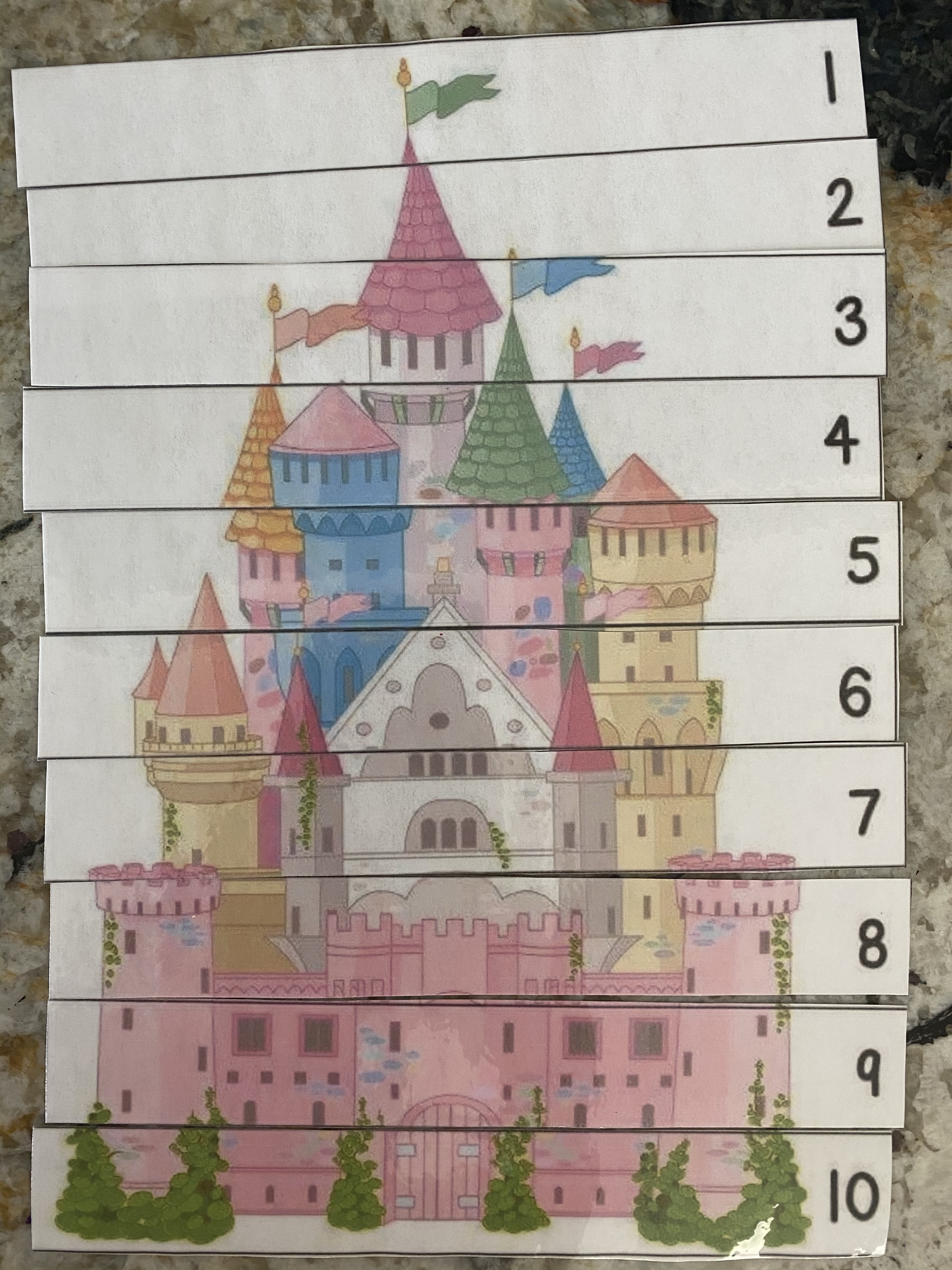 -Counting puzzle: I printed and laminated this castle puzzle, then had my little use the numbers to help him put it together.