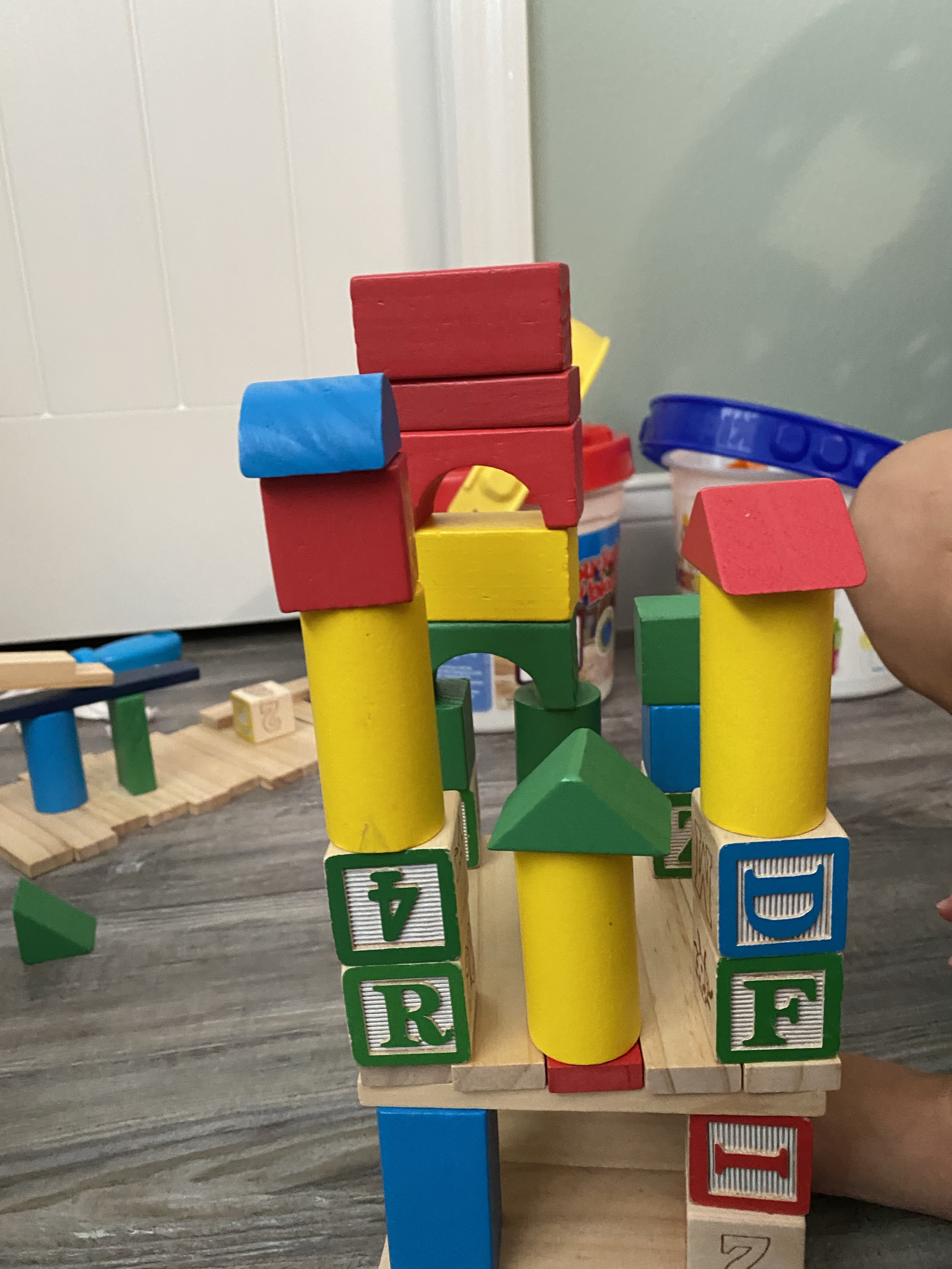 -Build a castle with blocks: Block play is always fun, but it becomes even more of an adventure when you have something specific to create! I asked my little if he wanted to build a castle with blocks and after an enthusiastic “Yea!” we spent about half an hour creating together! My toddler participated too, which is great fine motor practice for younger littles!