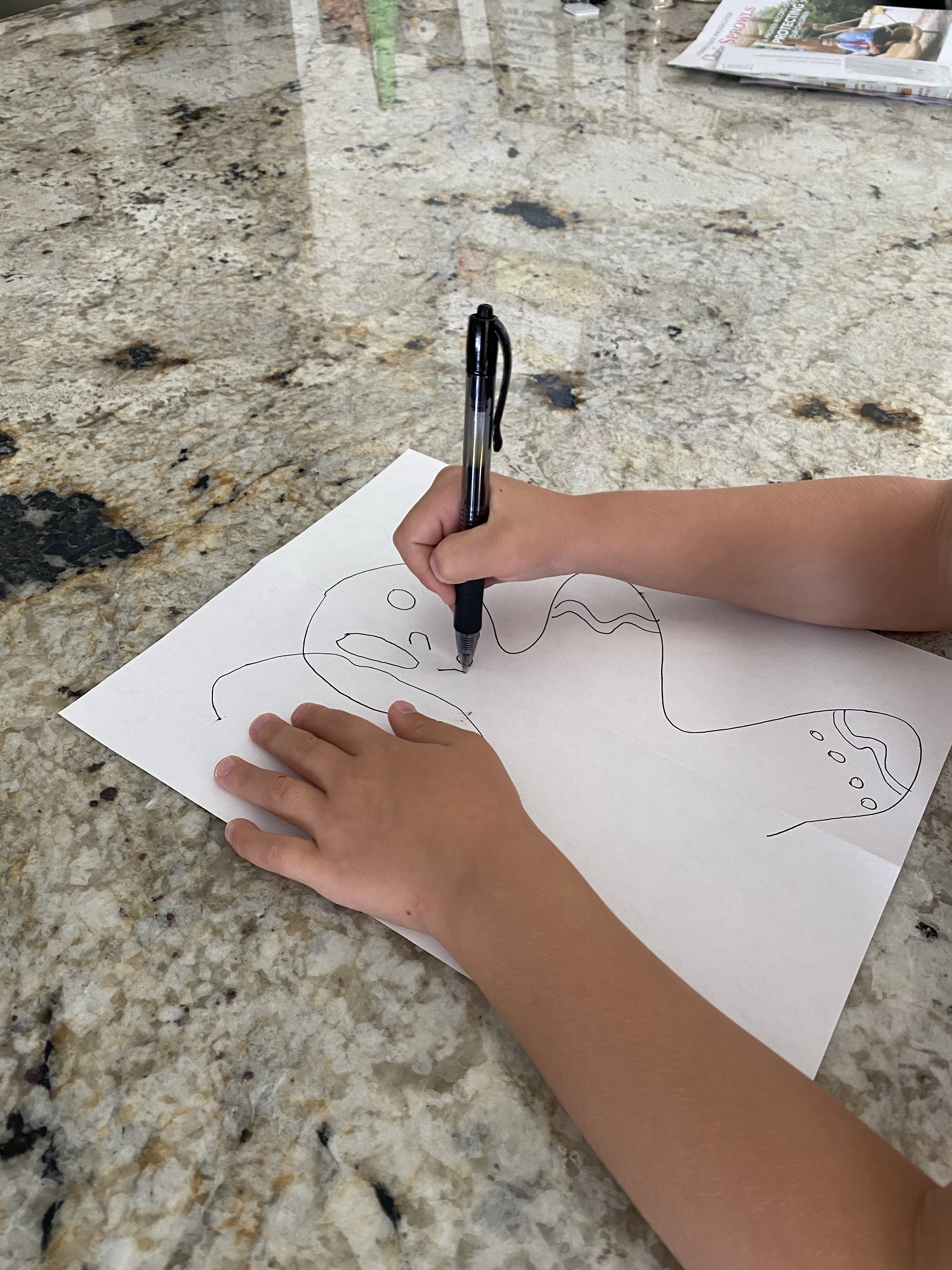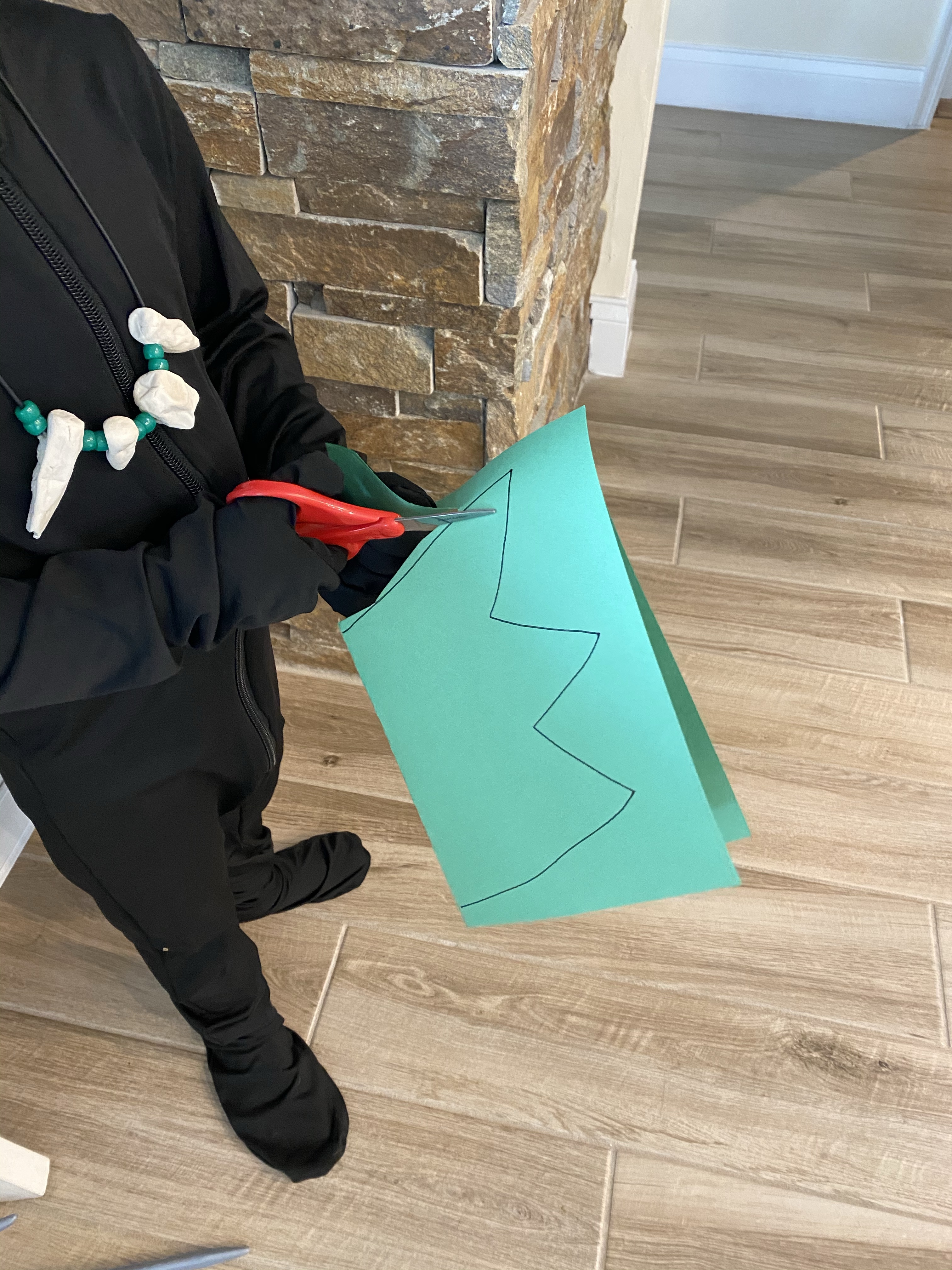 -Dragon wing symmetry: We reviewed symmetry then talked about how if you fold a paper in half and cut a shape out around the fold line, it will make a symmetrical shape. Then I folded a sheet of green construction paper in half, drew half of a set of dragon wings on it and had my little cut it out. When he was finished we looked at both sides of the wings and discussed how they were the same. I got this idea from PBS Kids who also shared a super cute reading by Michelle Obama of “There’s a Dragon in Your Book!” that my little loved!