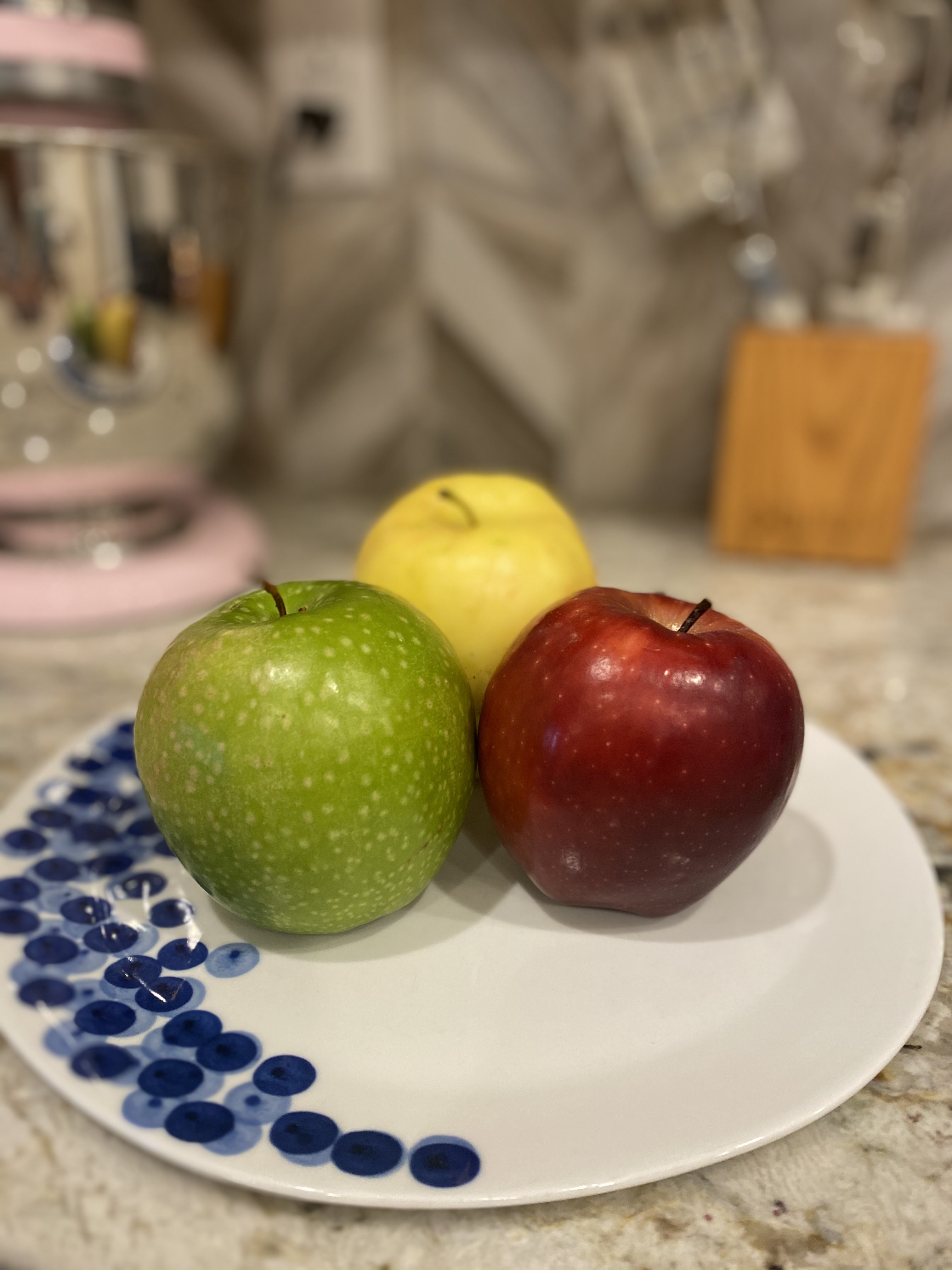 - red, green, and yellow apples
