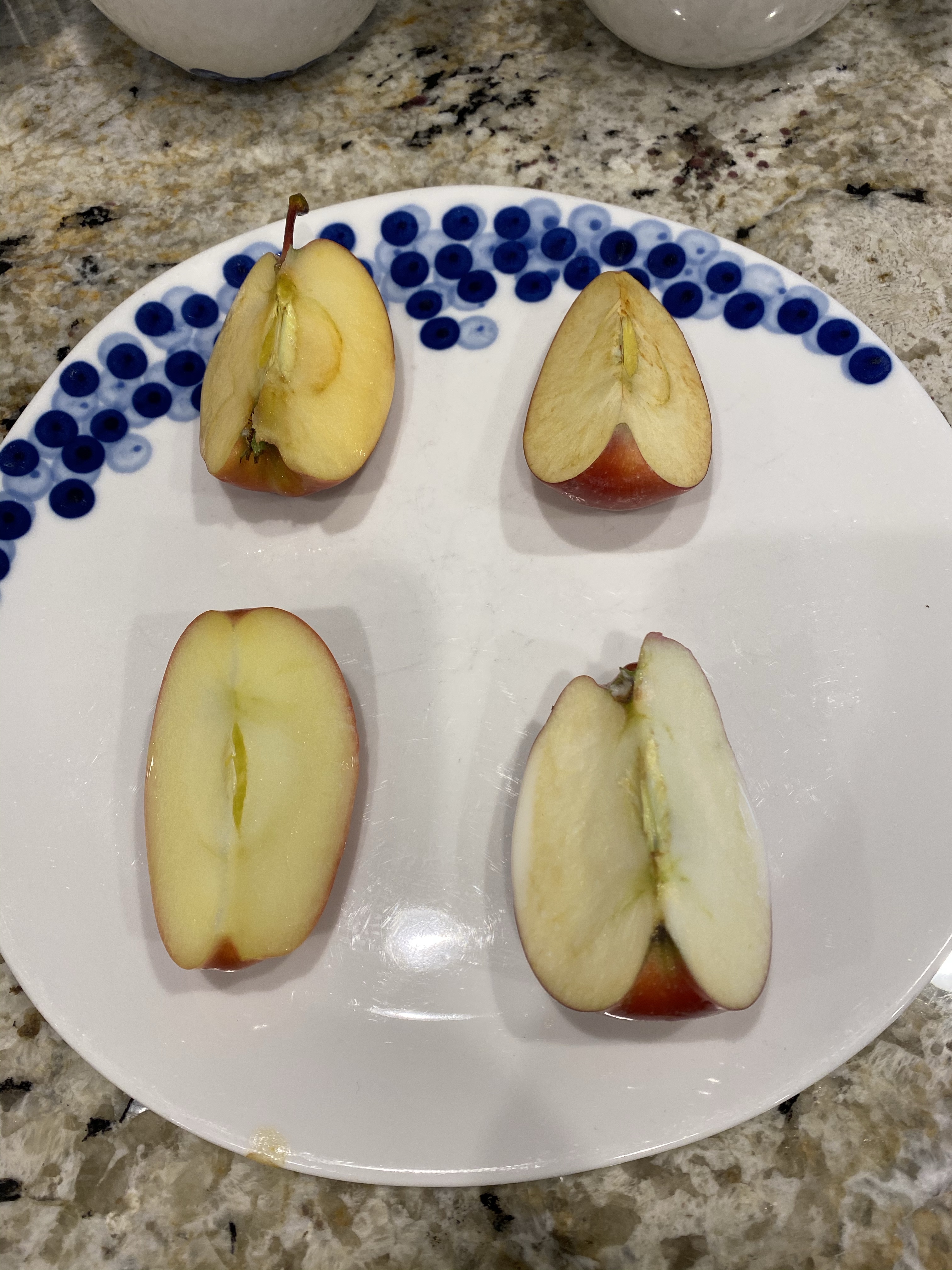 -Apple dissection: First I asked my little what he thought different colored apples would look like on the inside- would they look the same, or different? How might they be different? Then we sliced them open across the middle (to get the pretty star!) and compared them!