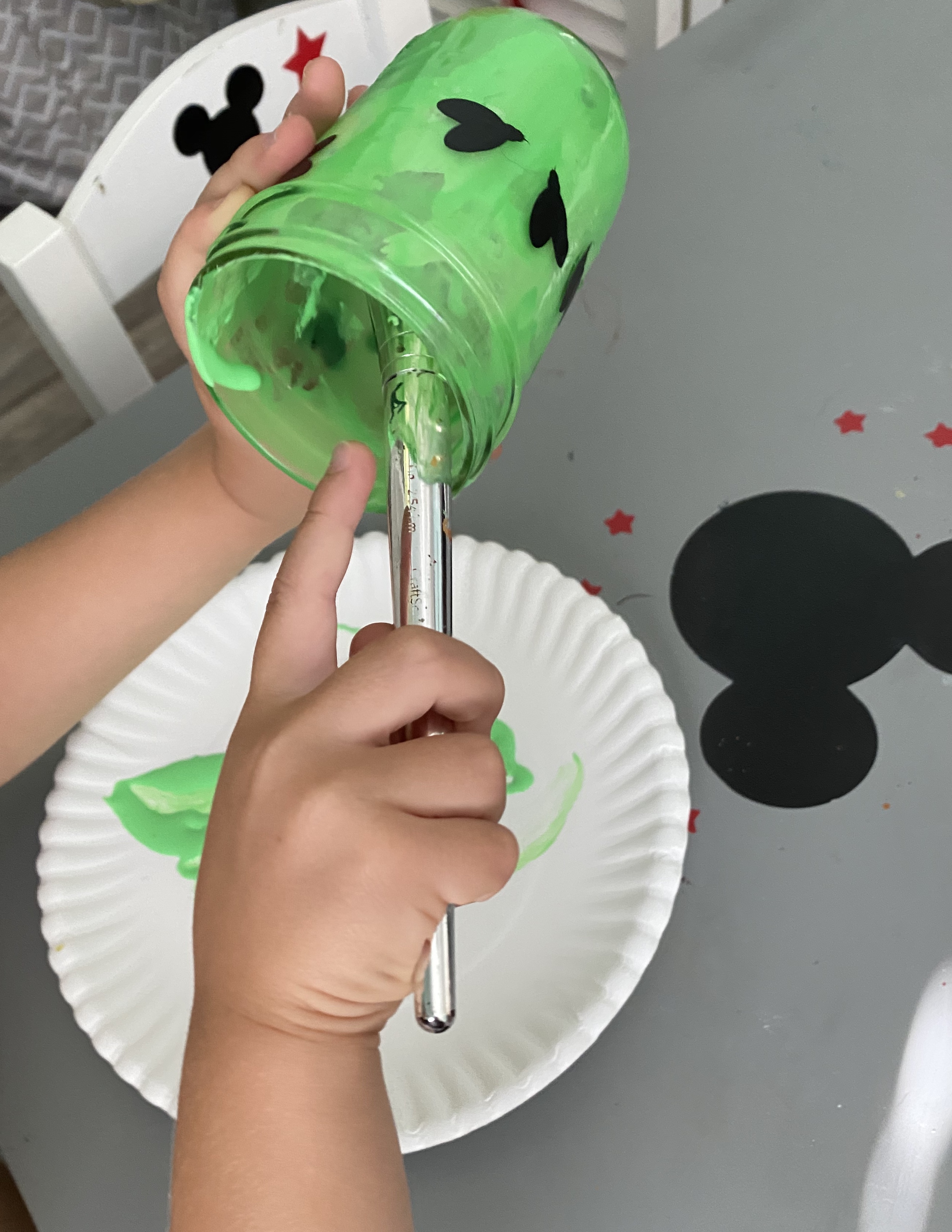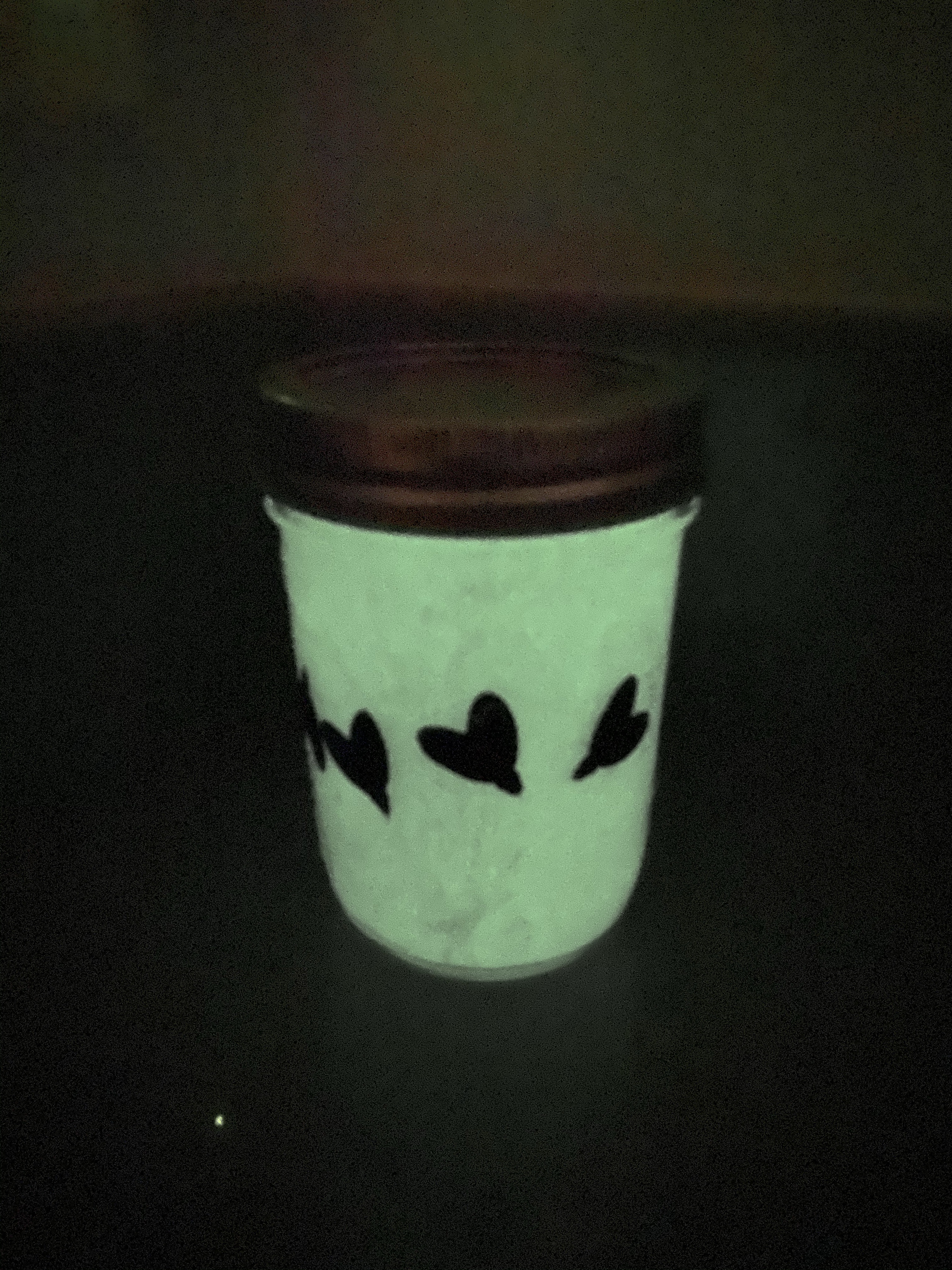 -Glowing firefly jar: I got this adorable idea from A Girl and a Glue Gun– you just have your little paint the inside of a mason jar with glow paint (we got our jar and paint from Walmart with our grocery pick up order!)- you should do 2-3 coats to make it really glow bright! Then my little added some cute firefly silhouette stickers I cut out using my Silhouette vinyl cutter (you could also paint some on, or draw them with a sharpie!). In the original blog post she skipped the stickers and added a little metal wire handle, which was also cute!