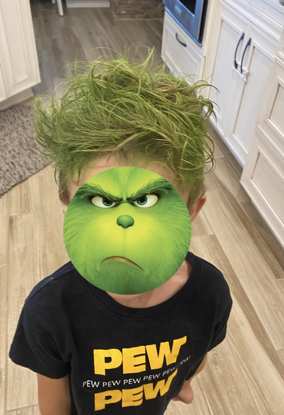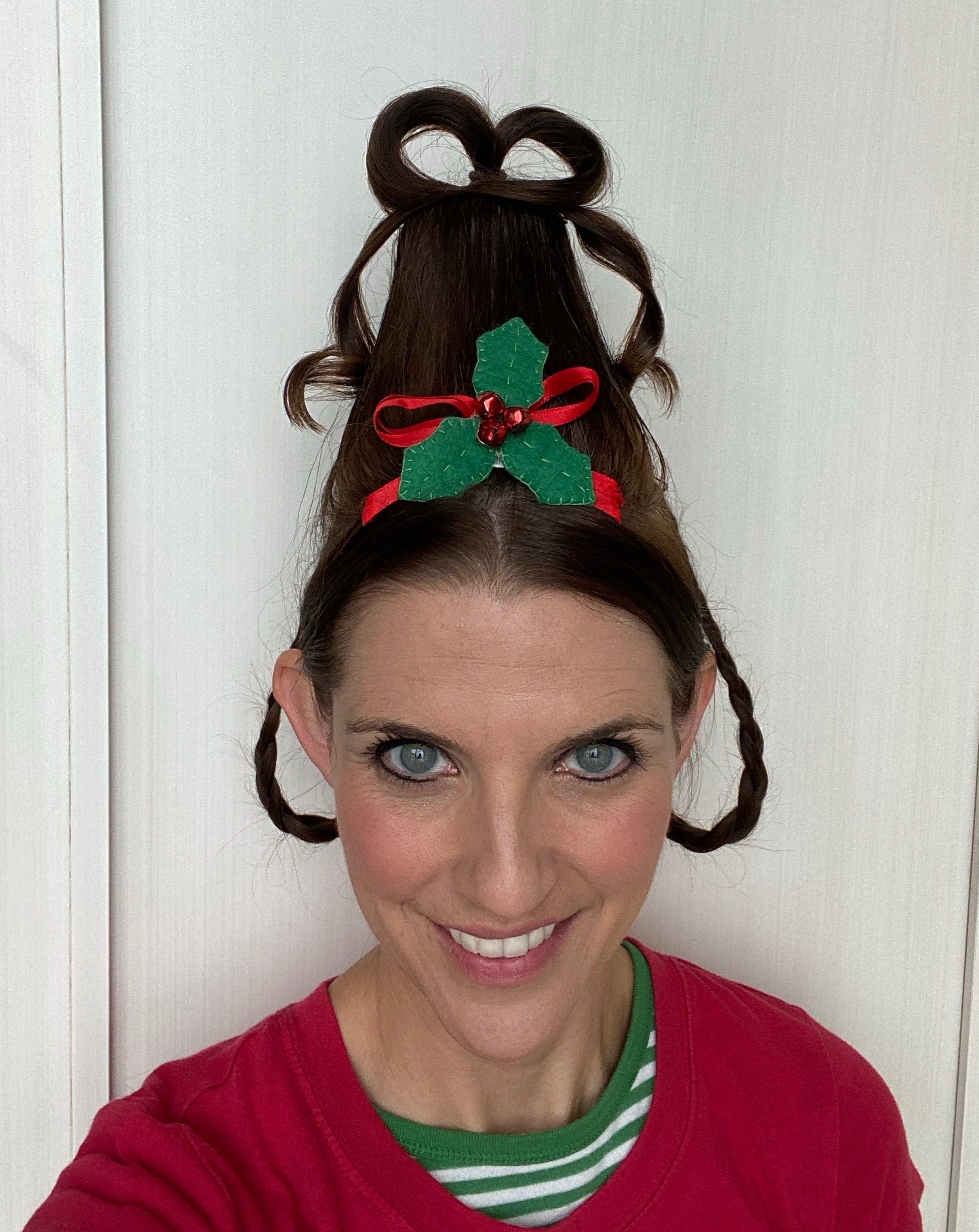 -Grinch/Who hair: Seeing as hairdressing is an art form, I’m just going to put this here! LoL This week is a fun chance to get creative with your little’s hair! If you have a kiddo with long hair, you can create a crazy “Cindy Lou Who” style updo fairly easily by following my tutorial on YouTube– all you need is a brush, hair spray, a small cup, some bobby pins, a few small elastics and a festive bow or flower clip! If your kiddo has shorter locks, you can spike it up with gel and spray it green for some groovy Grinch styled hair! My little loved his Grinch hair so much he cried when I washed it out during bath time and asked me to restyle it every morning all week long! hahaha Here’s a link to the green hair color I used!