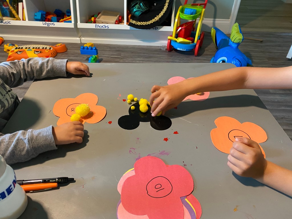 -Flower dot count: I drew stems and flower centers for each of the numbers my little is still mastering, then had him identify each number and use a dot marker to count out that amount of petals around the center.