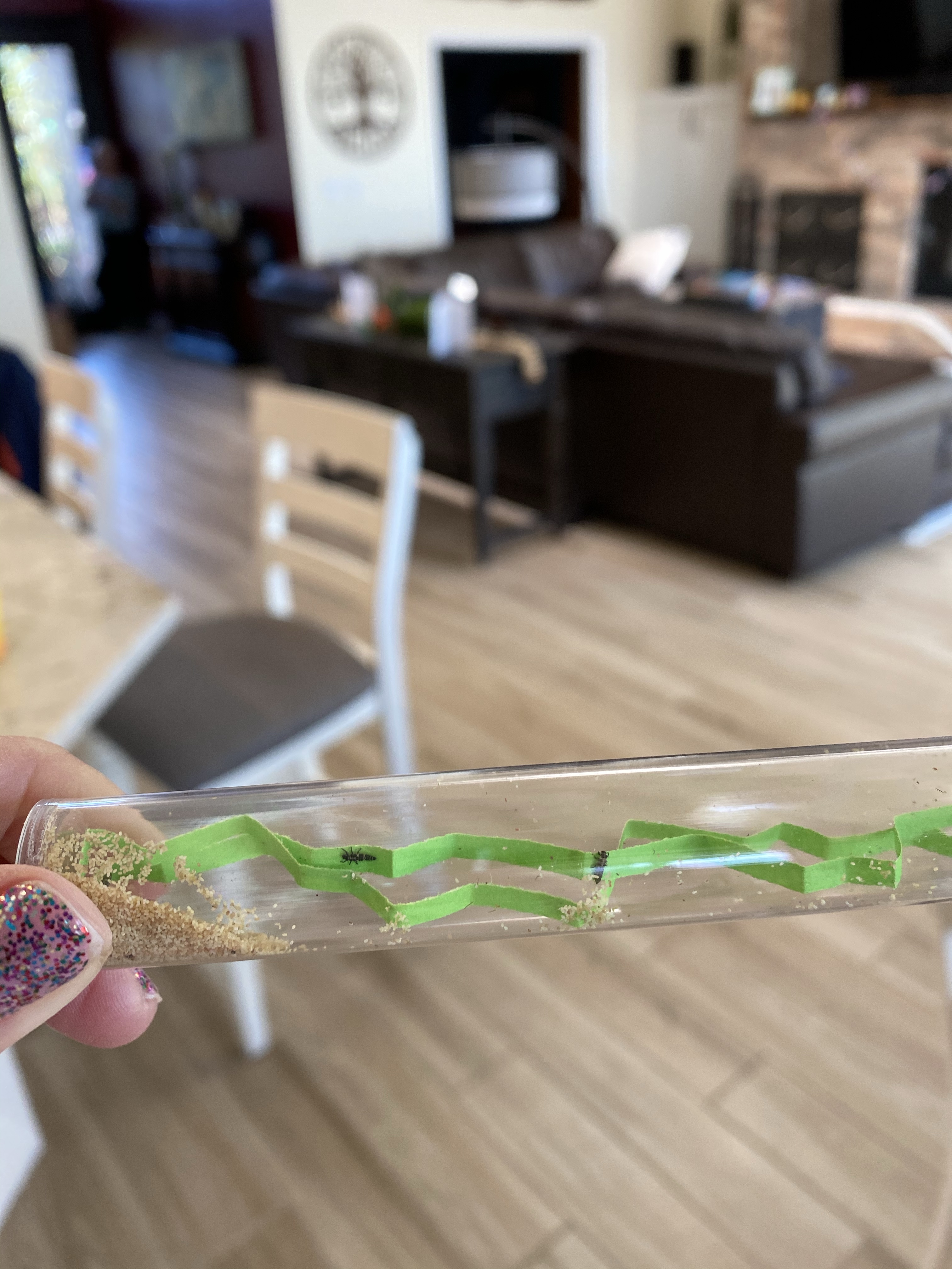 -Ladybug growing kit: This was the crown jewel of our ladybug week- raising our own ladybugs! You can get a kit on Amazon with live ladybugs included for around $30 ($20 if you just get the bugs and figurines). They come as larvae and eat and molt and grow- then turn into pupae (which is almost like what butterflies do- they attach to a leaf and their body hardens into a case as they change inside). Then they come out as adult ladybugs! Unfortunately, our bugs all died within a few days of getting them…I emailed the company and they were super helpful getting us replacements! They guarantee 5 bugs will fully transform into ladies. It’s a great way to observe metamorphosis up close!