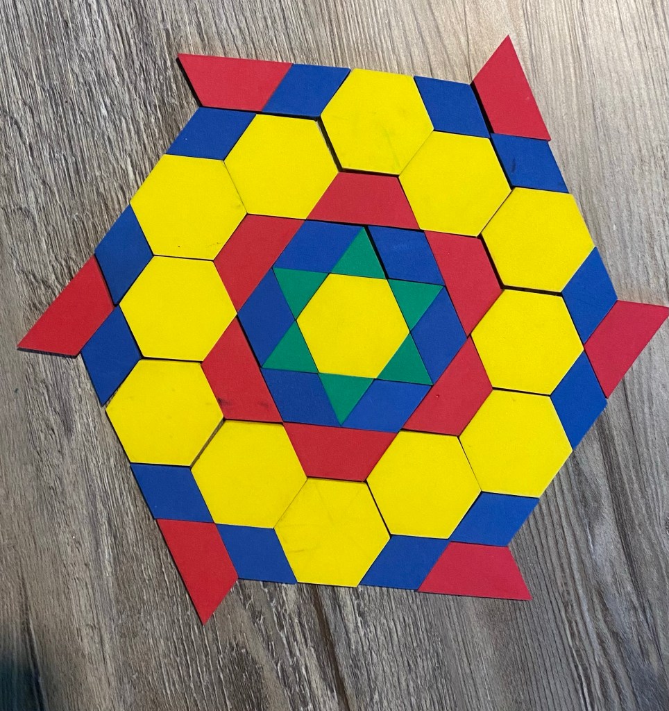 Art: India- Pattern block mandalas: First we looked at some Indian mandalas online then we broke out the pattern blocks and tried to make a few ourselves. My little had a bit of a hard time getting the concept of fitting the shapes together (the photo is my own mandala) so printing a guide might be a good idea instead of letting them go free hand- at least for the first one!