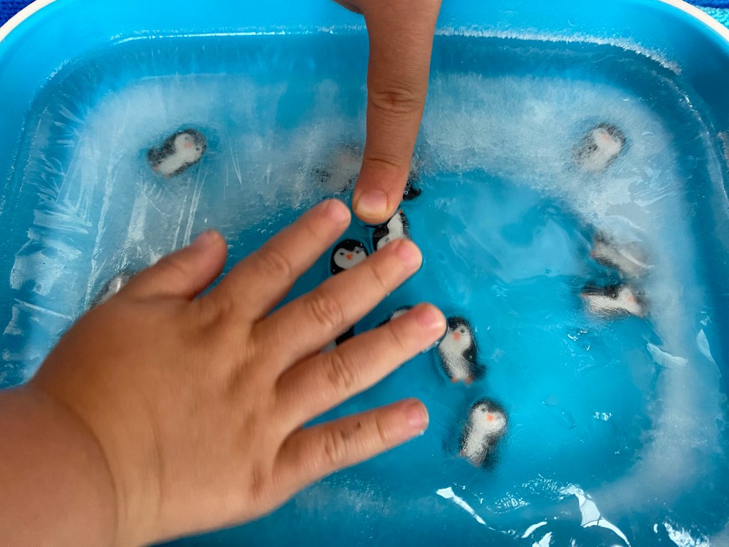 Save the penguins sensory play- I froze our set of penguin erasers in some ice then had my littles try to help them escape! If you don’t have penguin erasers on hand (I got mine at Target this winter), you can always use a set of plastic penguin figurines.