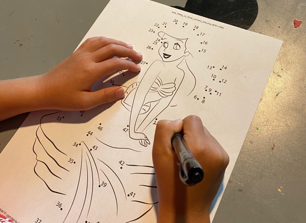-Mermaid connect the dot page: I printed this Ariel connect the dots page then had my little connect them while counting. Then we colored the picture together.