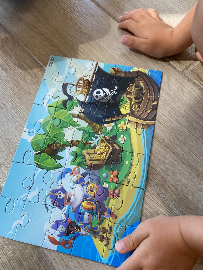 -Pirate puzzle: I’m not sure if a puzzle is considered art, but we got a pirate puzzle from Nana for Christmas and put it together as a team! The Dollar Tree has some great kids puzzles- I’m not sure if they’ve got pirates, but I bet you could find mermaids!