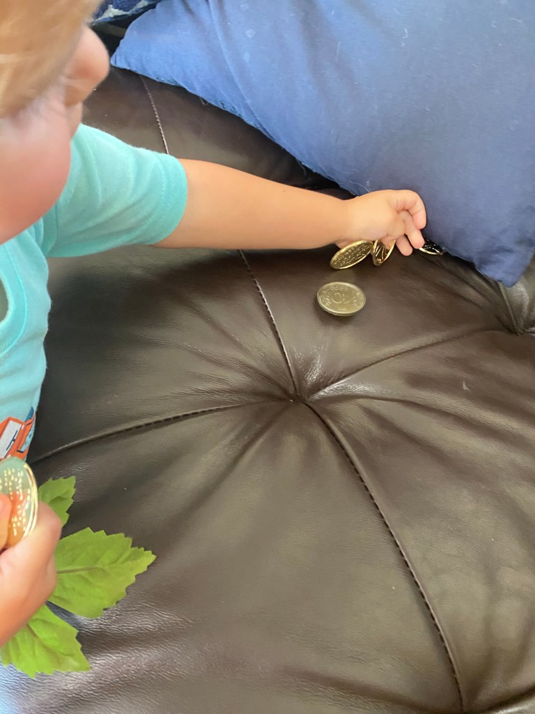 –Treasure hunt: I hid a bunch of plastic gold coins we had on hand from St. Patrick’s Day around our house while my littles hid in the playroom. Then when I was done I had them come hunt for the coins. They had so much fun we did this several times- and then they hid the coins for me to find which they thought was even MORE fun! LoL If you don’t have plastic gold coins on hand, chocolate coins work great too!
