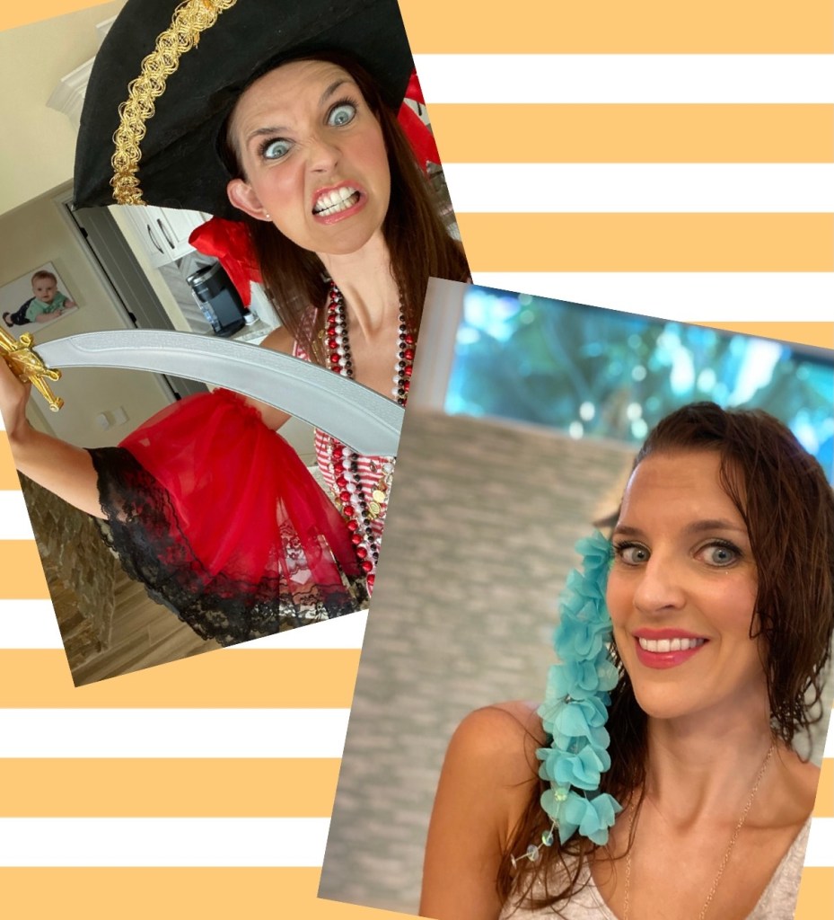 –Mermaid and pirate dress up/imaginary play: We busted out all of our pirate gear and I drew beards and mustaches on my littles with a liquid eyeliner pen. Then we spent the morning having epic swashbuckling adventures lead by their little imaginations and my spot on pirate accent! hahaha You could also do a mermaid princess dress up and play day!