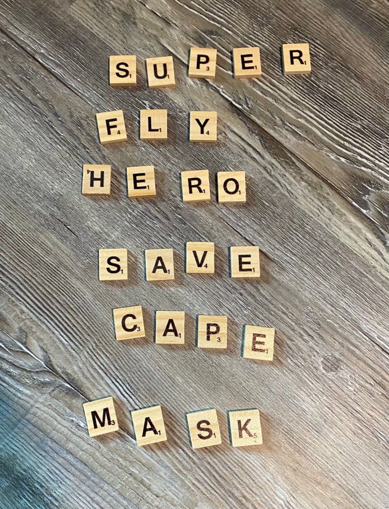 -Spell hero words: I got out the Scrabble letters to spell a set of hero words (see picture below for list) then had my little sound them out and spell them. When we got to the words with vowel pairs (cape and save), I taught him the rule “when two vowels go walking, the first one does the talking and it always says its name”.