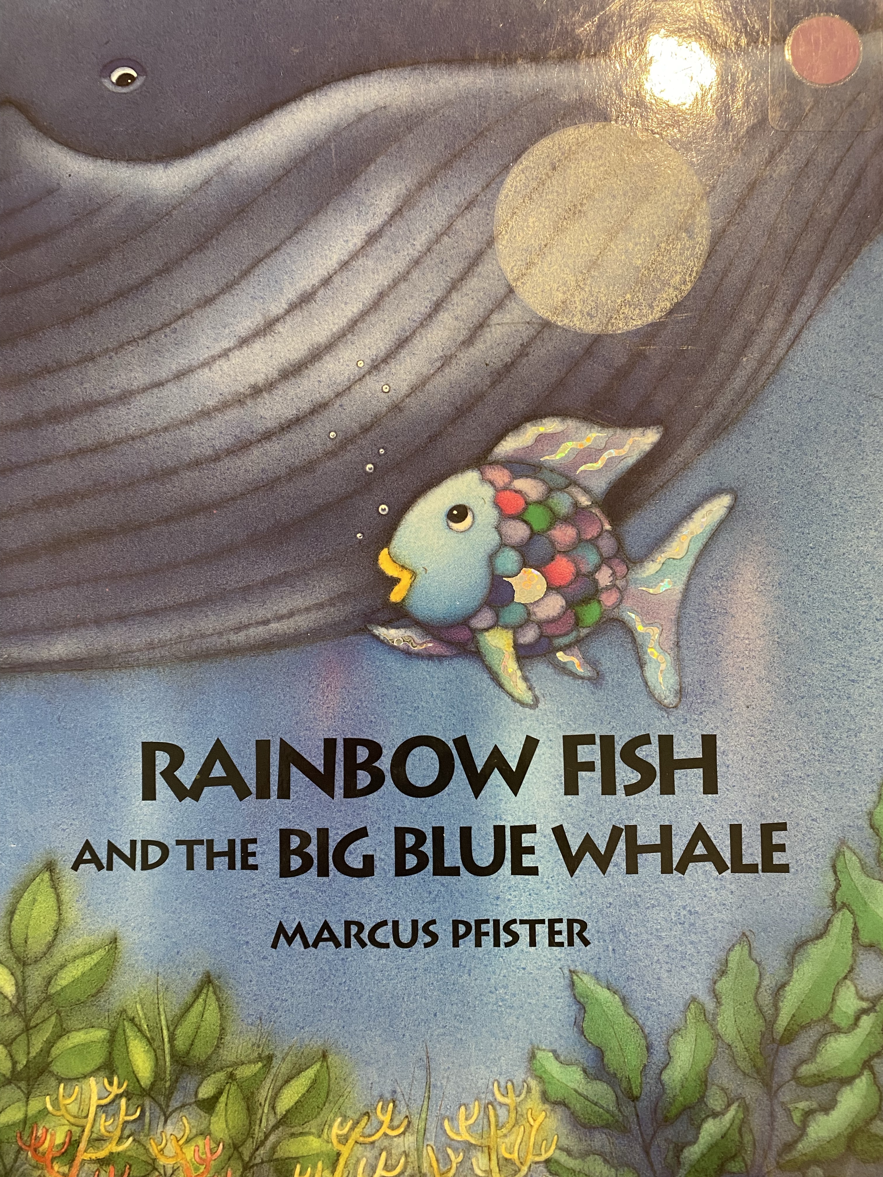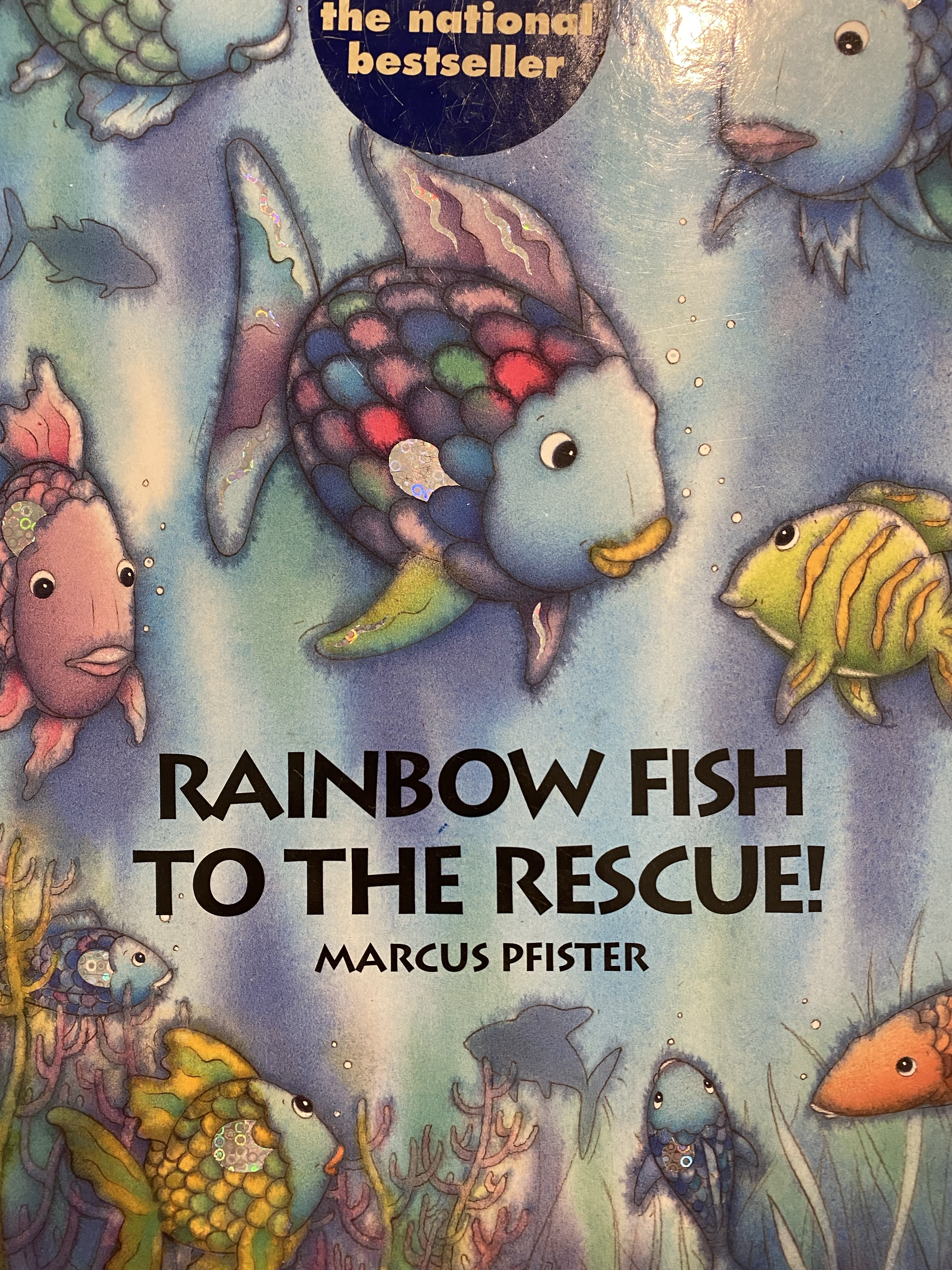 -Scale counting: We used the cover of “The Rainbow Fish” to practice accurate counting. I had my little count the silver scales, the pink, the green and the purple/blue (we did those together because it was a bit hard to distinguish them since the illustrator often mixed the colors). Then I had him count all the scales together.