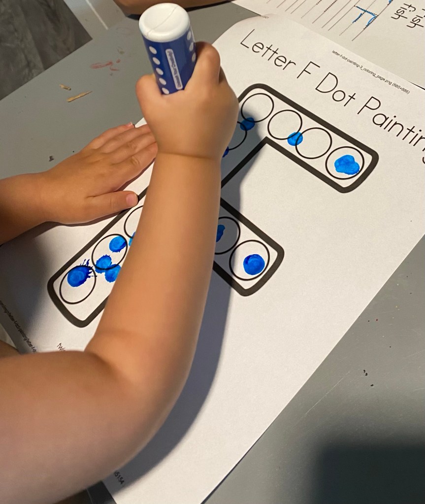 –F is for fish: I had my little make the letter “F” using a dot marker on this practice page.