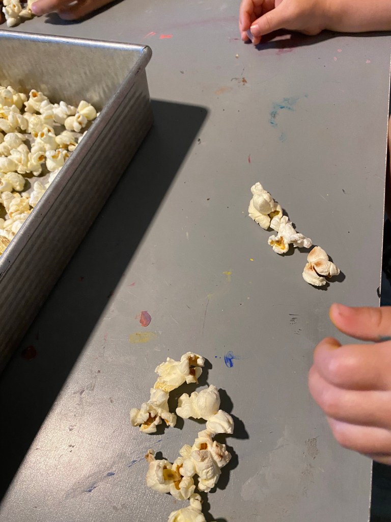 –Popcorn counting: I gave my little 10 pieces of popcorn and had him count them then eat them for a snack. (For older toddlers and only- popcorn can be a choking hazard!)