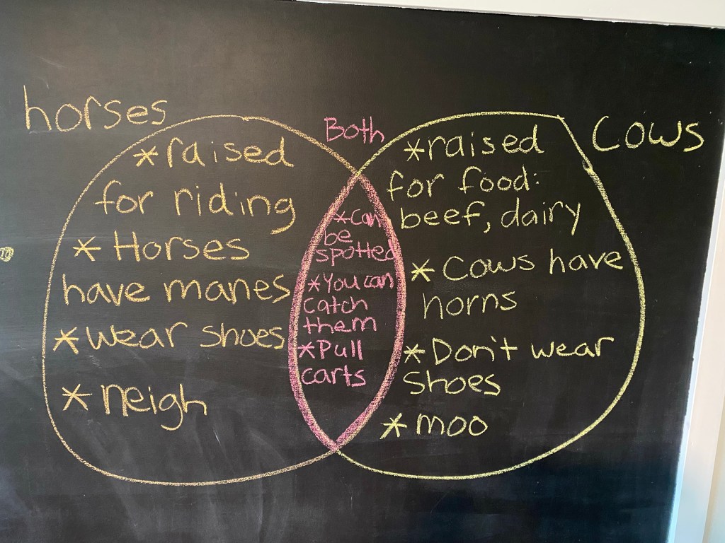 -Cows and horses comparing: I read a book on cows and a book on horses to my littles, then we used a Venn Diagram to compare them.
