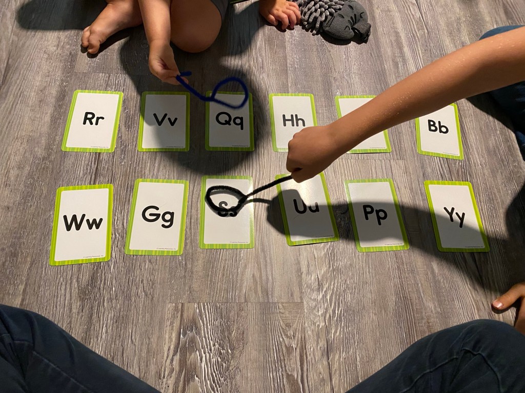 -Lasso the letters: I put out 10-12 ABC flashcards at a time then gave my littles “lassos” I made out of pipe cleaners. For the activity I would say a letter then have them lasso it.