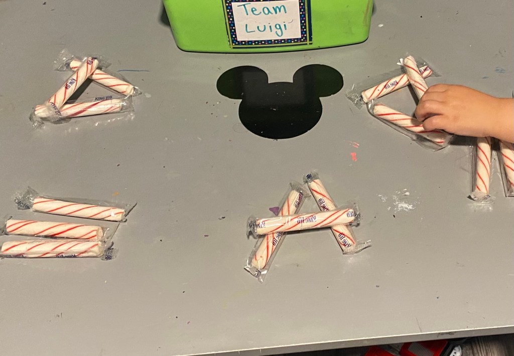-Make letters with candy cane sticks: We went through the alphabet and I challenged my littles to make each letter using old fashioned peppermint sticks– which came in wrappers so we didn’t have to throw them out after! You can also break the curve off of some candy canes and use them instead.
