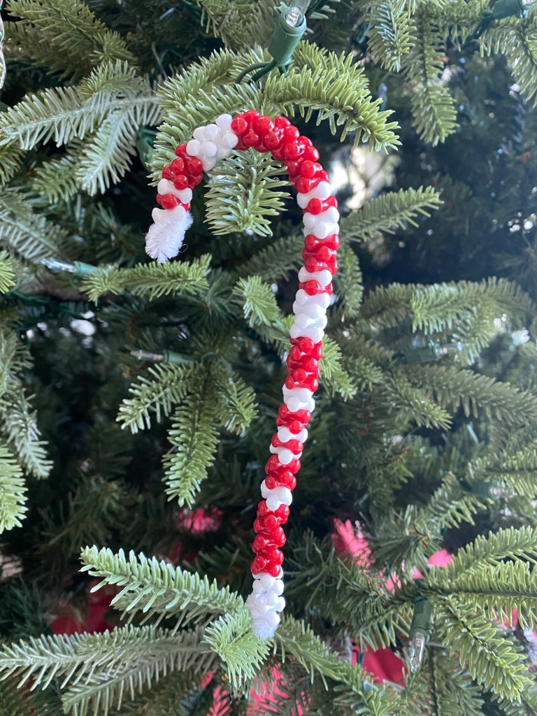 -Candy cane pipe cleaner and bead craft: This is so easy and comes out perfect to hang on your tree! (Plus it works on those fine motor skills- win-win-win! You just have your little put read and white beads on a pipe cleaner and bend it into a candy cane shape.
