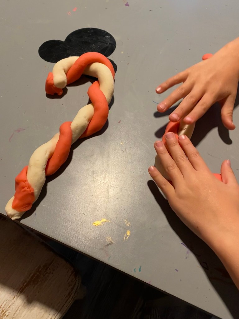 -Candy cane person craft: I had my littles draw large ovals on their papers, then add a circle on top with a face for the head. Then I had them glue on mini candy canes for the arms and legs! LoL This might’ve been cuter if I gave them shapes to glue down for the body and head (and maybe for hats?) but they still had fun with it!