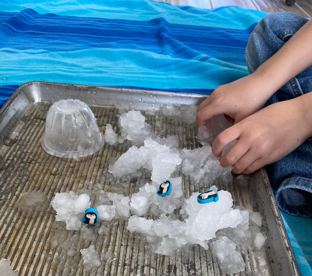 -Melting ice inquiry: I asked my littles what makes frozen things melt (heat!) Then I asked them what they thought would happen to ice cubes left in the sun, in the house, and in the fridge. Then we put 3 ice cubes in each location and observed their changes and compared them.