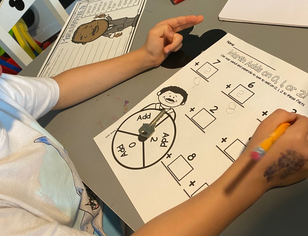 -Martin adds on worksheet: We reviewed the “counting on” strategy for addition, then I had my little complete this adding on MLK worksheet I found on Teachers Pay Teachers.