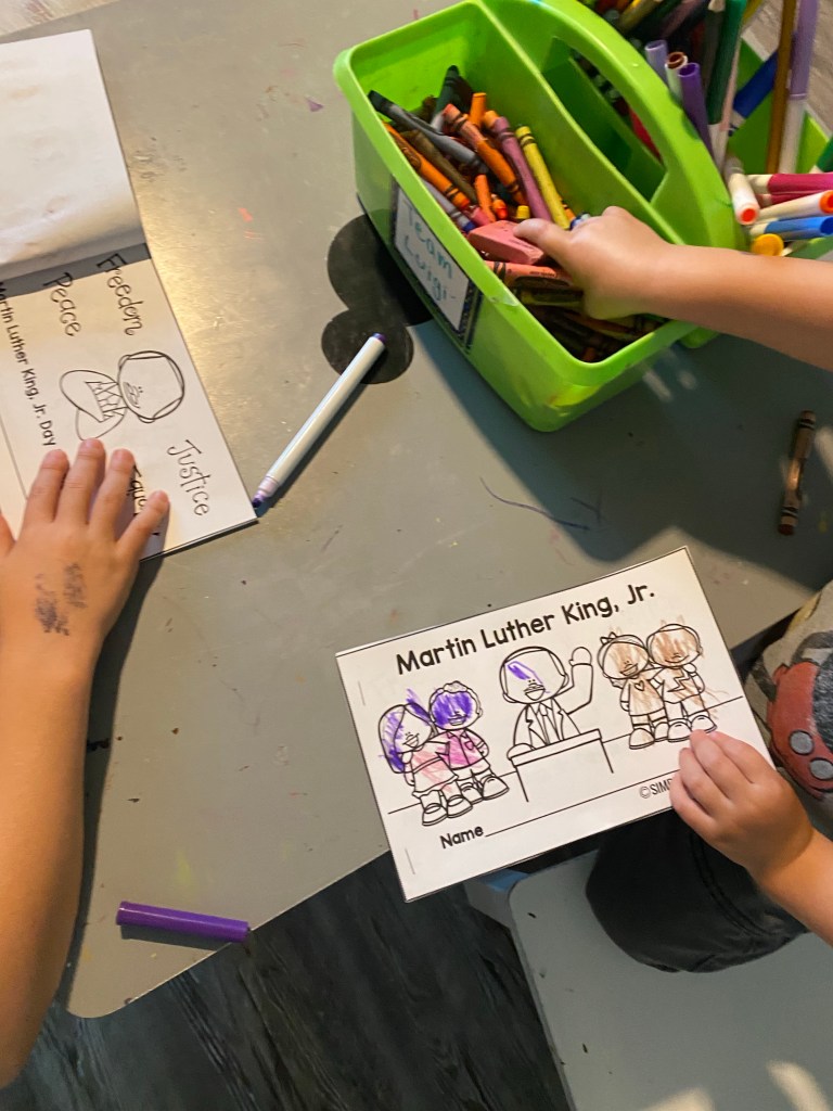 -MLK easy reader: I read each page of this MLK easy reader to my littles then had them color the page.