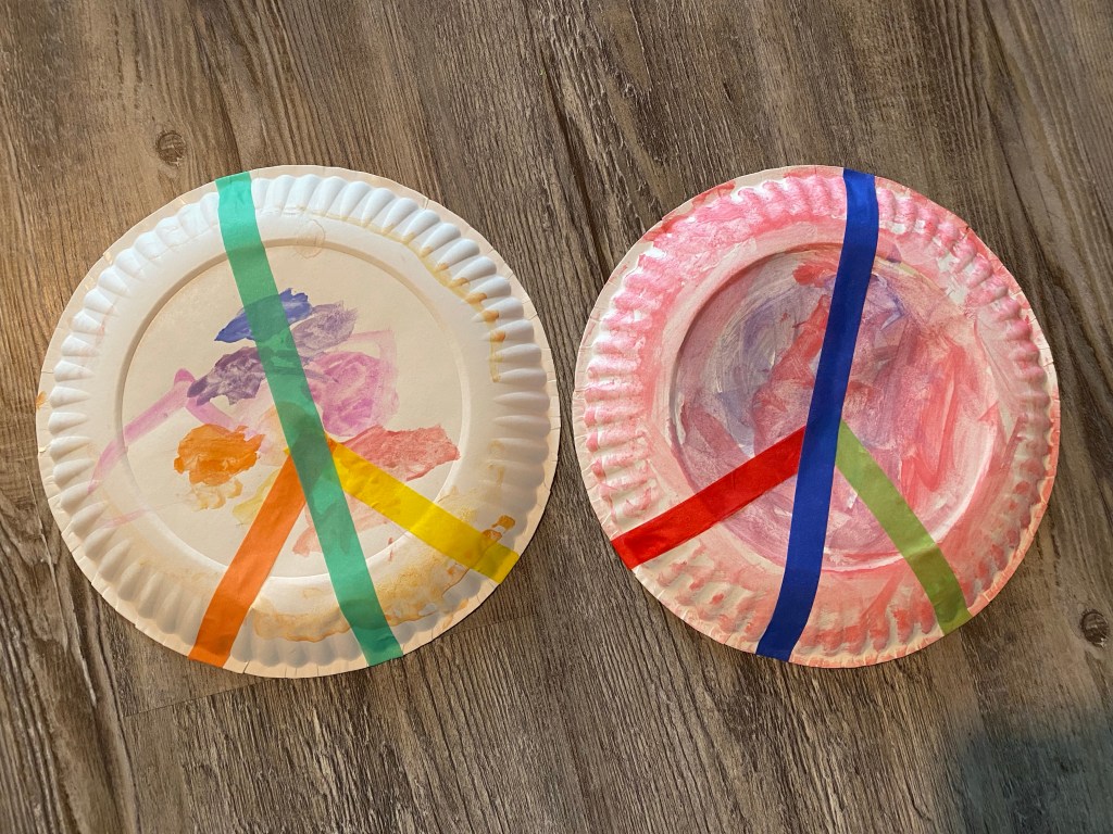 -Peace sign paper plate craft: I had my littles paint paper plates with watercolors, then when they were dry I had them choose 3 colors of washi tape to make them into peace signs. I got this idea from 1, 2, 3 Homeschool for Me.