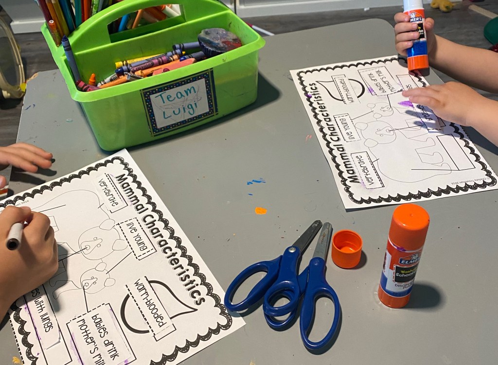 -Cut and paste mammal characteristics: Technically this is a science activity, but this week there will be some crossover since our theme is science based. I printed these mammal diagrams from Teachers Pay Teachers, then had my littles cut out the words and find the correct ones for each part of the diagram using their letter sound knowledge (ie. I’d say “Mammals have fur and hair…can you find the card that says f-f-fur and h-h-hair?”). I helped my 3 year old read his, but my 5 year old figured it out independently.