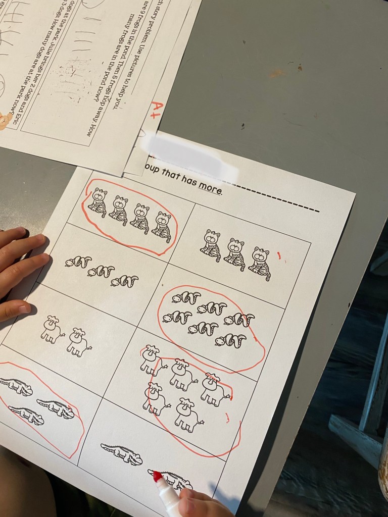 -Which has more: My 3 year old completed this page while my 5 year old worked on his graph. (He’s pretty much done with nap time, and he gets sad if he doesn’t have an activity to do along with his brother, but since they’re a bit too hard for him, these little pages were perfect!