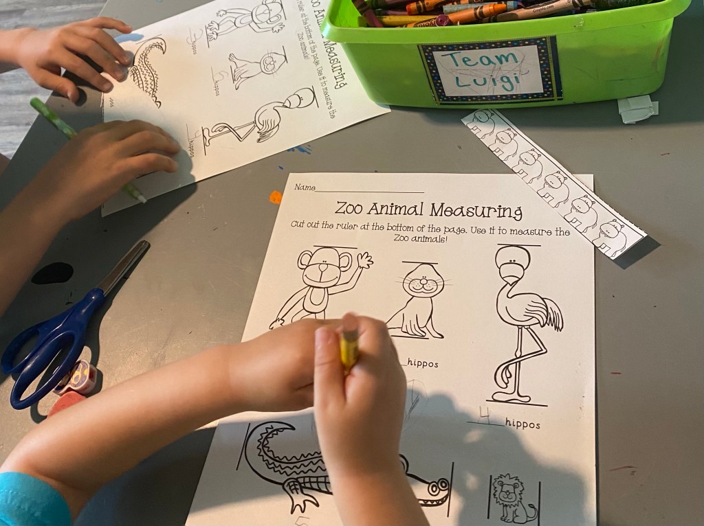 -Animal nonstandard measuring: I printed this animal measuring page then had my littles cut out the “ruler” and measure each critter on the page.
